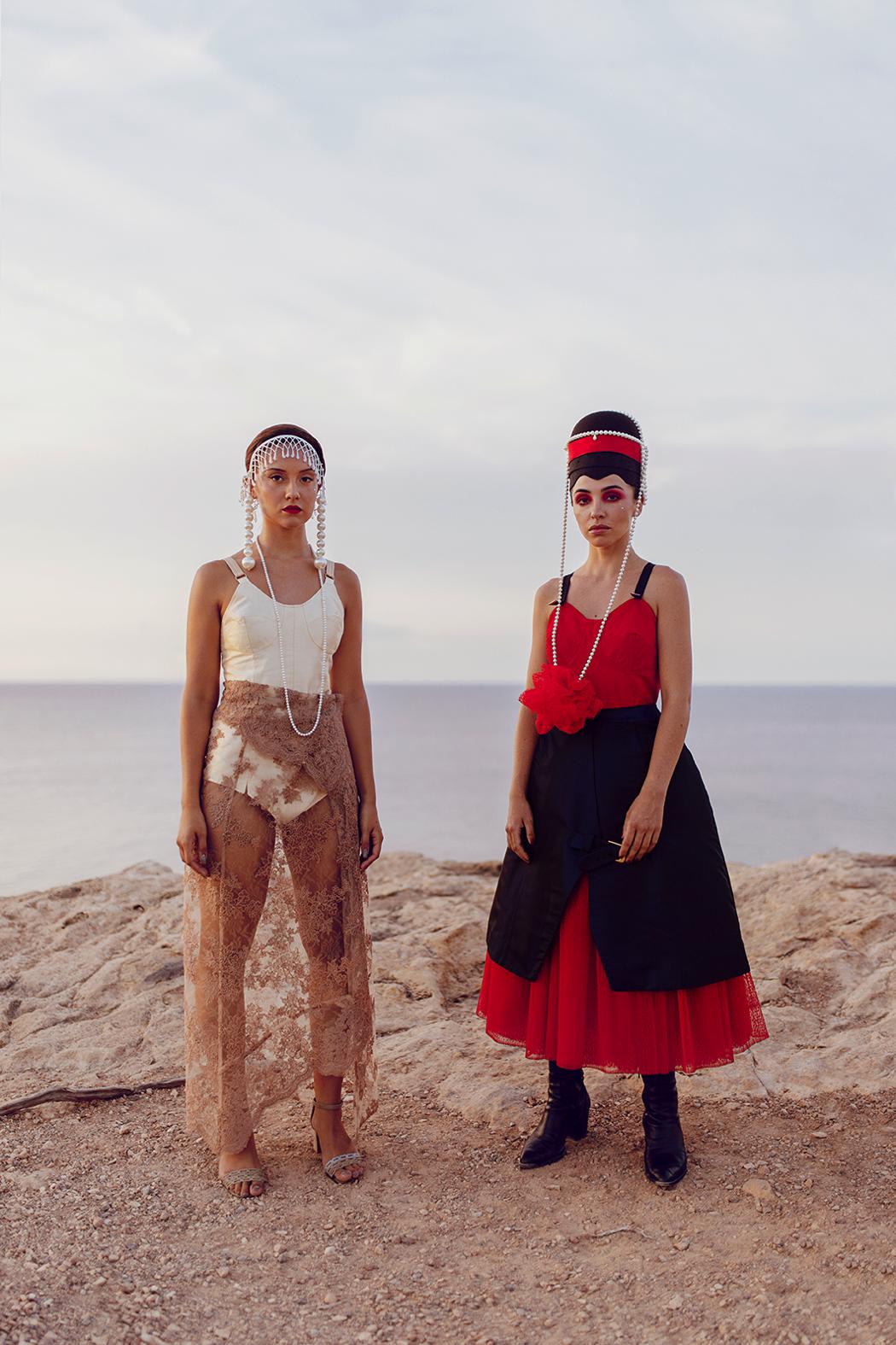 The images were taken in Ibiza in September 2020 in different locations. A set with a white background was created for the images in the lookbook, others were taken in a lighthouse near a cliff and the last ones, with the last light of the day, in a stone pool. A collection by Lina Riera.