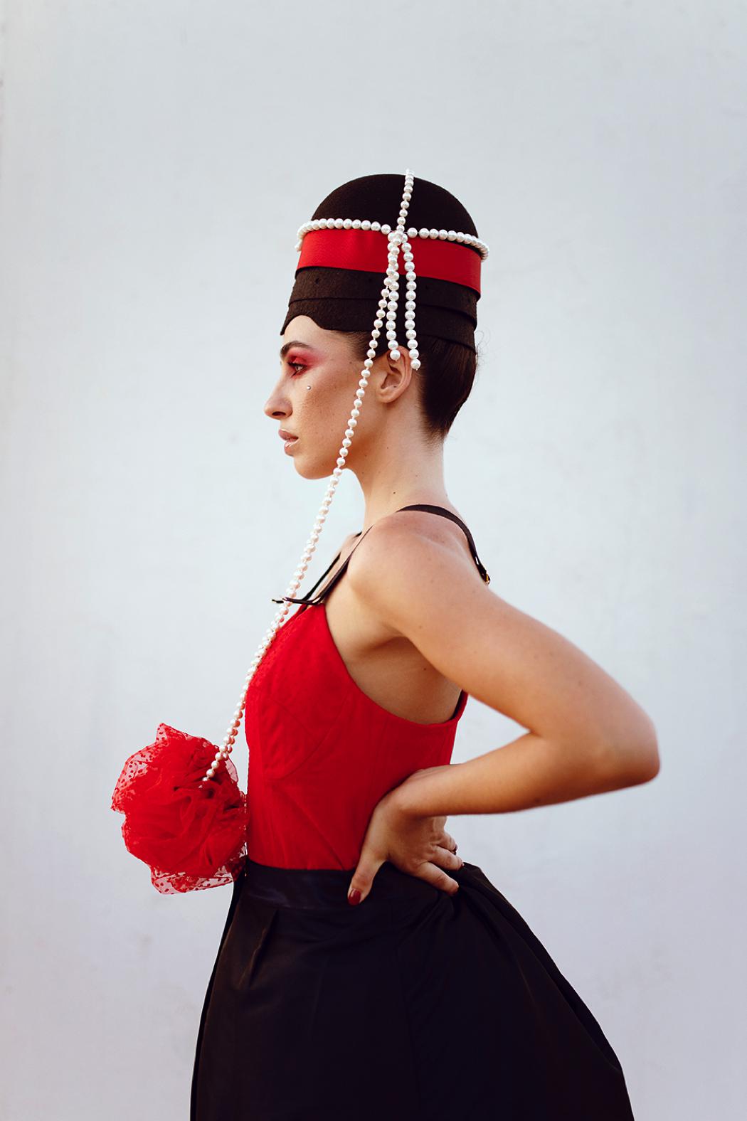 L’Oeil Femme F/W2020 is Lina Riera’s first fashion collection, photographed by Celina Martins. The designs fuse the archetypes of the garçonne, burlesque, and cabaret woman generating a new feminine figure through contemporary codes. The series portrays each protagonist with a rather theatrical wardrobe, embodying the individuality that the garments strive for.