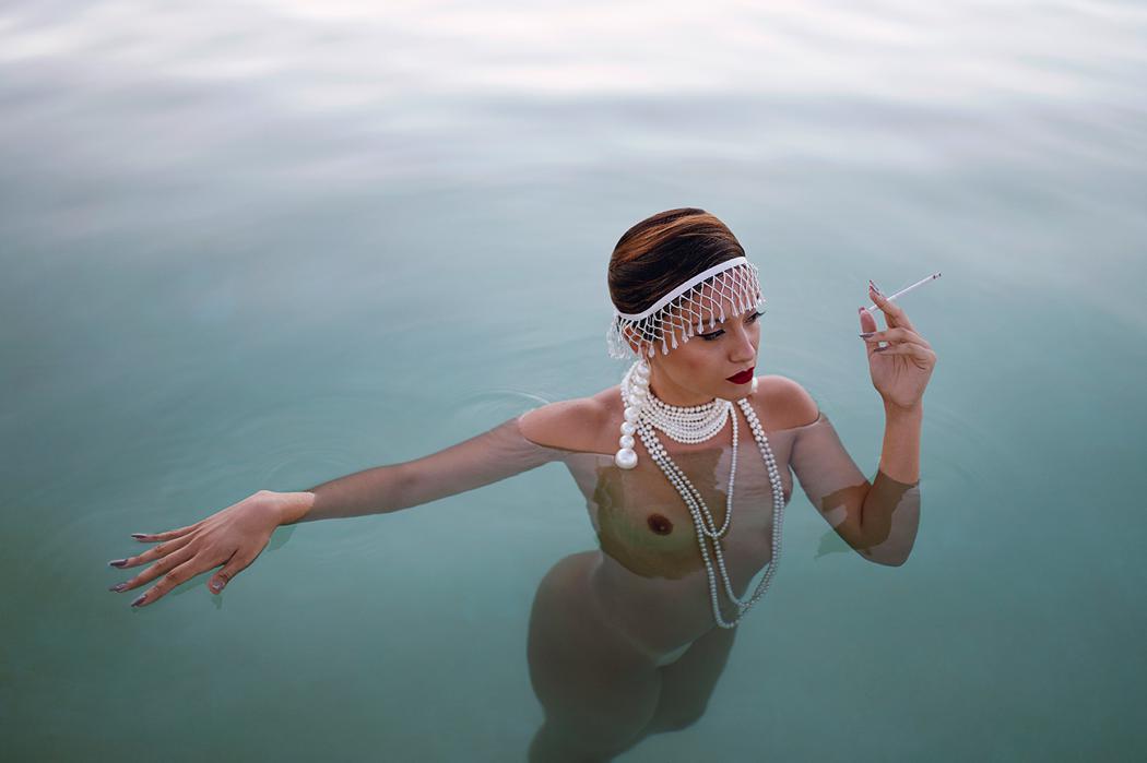 The images were taken in Ibiza in September 2020 in different locations. A set with a white background was created for the images in the lookbook, others were taken in a lighthouse near a cliff and the last ones, with the last light of the day, in a stone pool. A collection by Lina Riera.