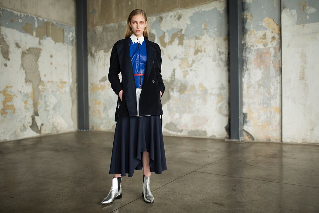 Coat : Vasia Tzortzopoulou, Shirt : TEEM by Ritta Attala , Skirt ALYSI (All from : Passion Alley)