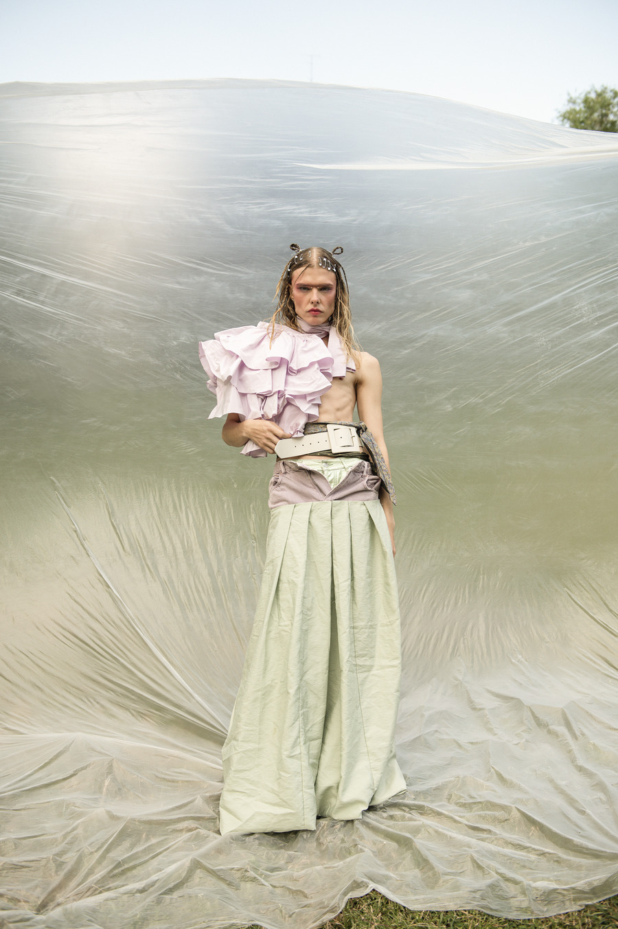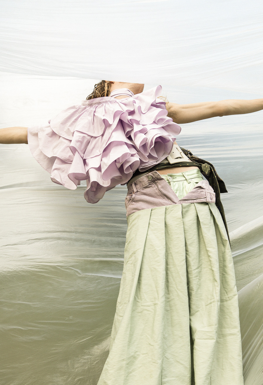 “This project proposes a reflection on what shapes the imagination of the opposite genders in society, through the silhouettes of the clothes that have been defining our bodies since the first trace of humanity, and continue today to exert silent oppression in the way in which each of us communicates our true “me” to the world. This concept is represented by images divided into two series. The first will reproduce recognizable silhouettes and be socially linked to gender identity; in the second, light is made on the body, showing a different reality than expected. Androgynous beauty, alteration of limits and dissidence of social standards as the bases on which this editorial is built.”
