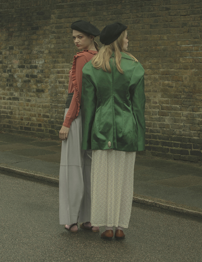A KALTBLUT exclusive womenswear editorial. Young Hungarian photographer Fanni Sutus, who mainly focuses on document photography, and Czech stylist and art directior Magda Zurkova captured these melancholic scenes in gloomy British weather. Summer doesn´t always mean sun. Models are Frida and Lindsey.