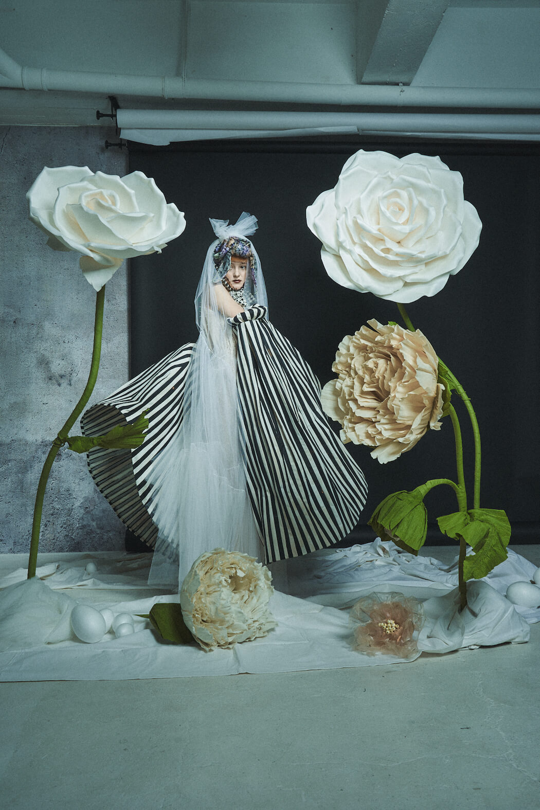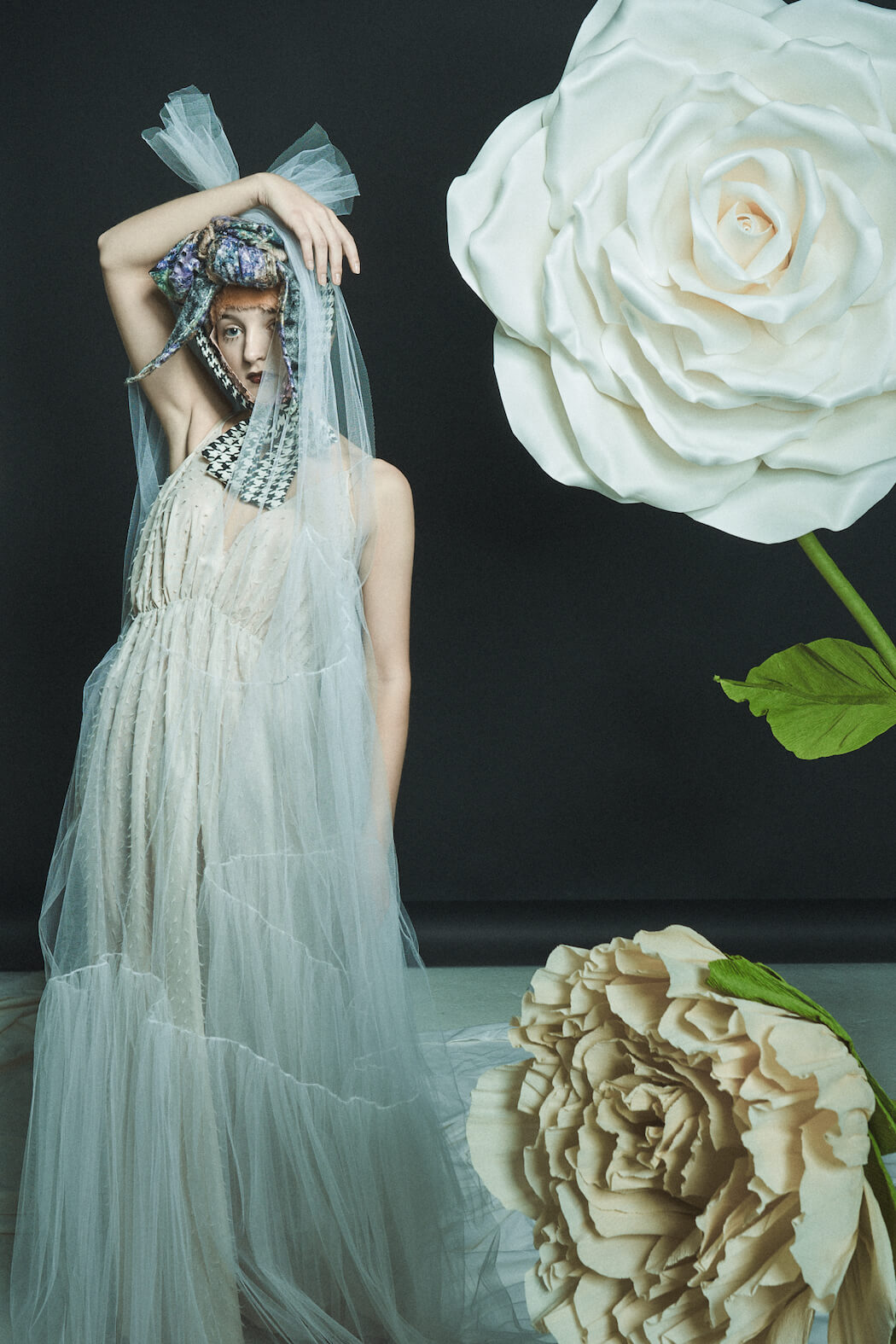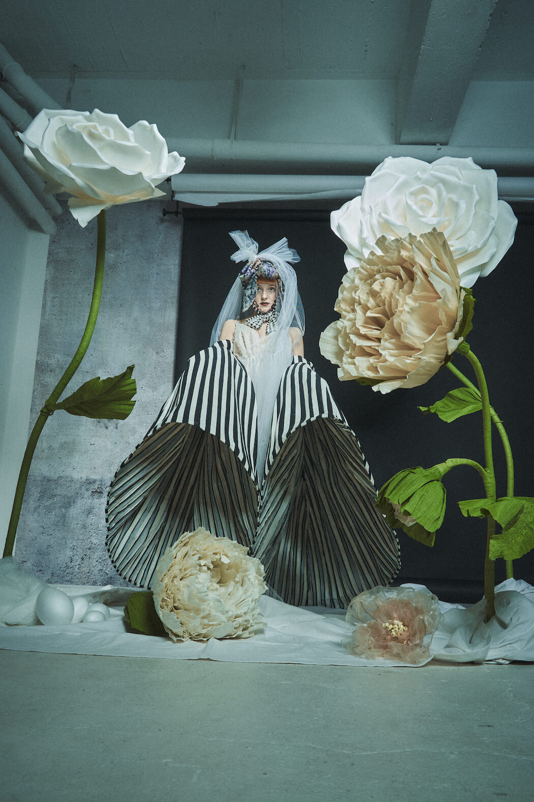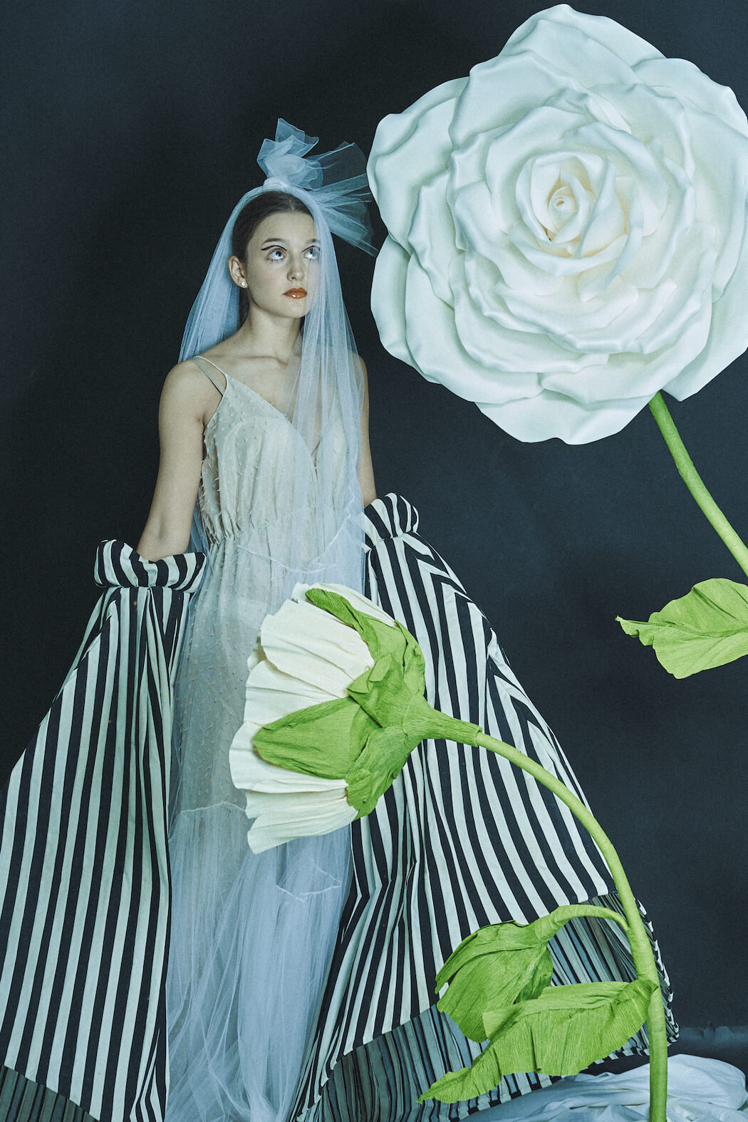 A KALTBLUT exclusive. Photography, Creative Direction & Set Design by Leandra García. All fashion by Eva Heugenhauser. Model is Karoline Schneider. Hair & Make Up by Leandra García. Flowers made by Fleurinna Dekor.