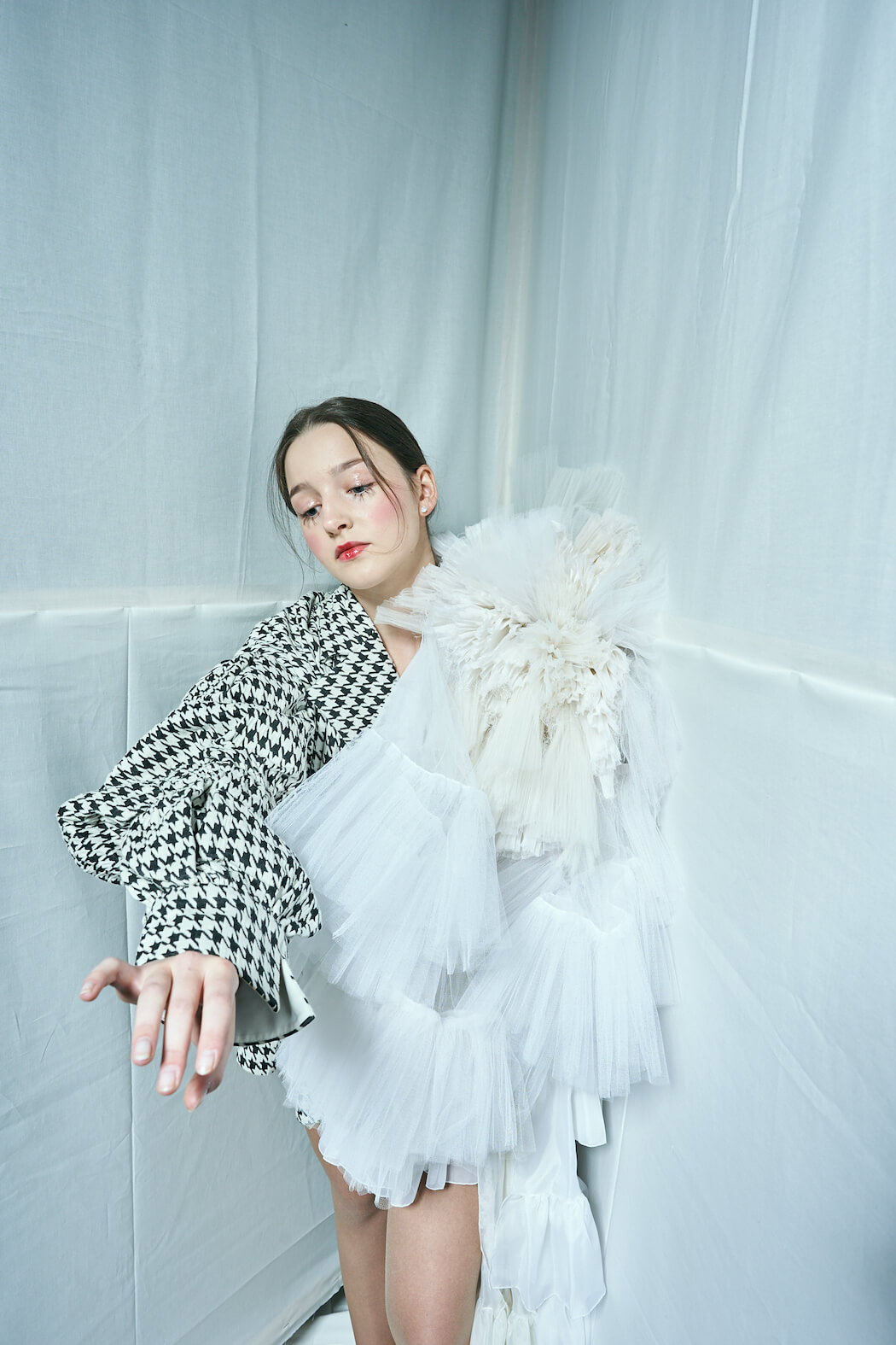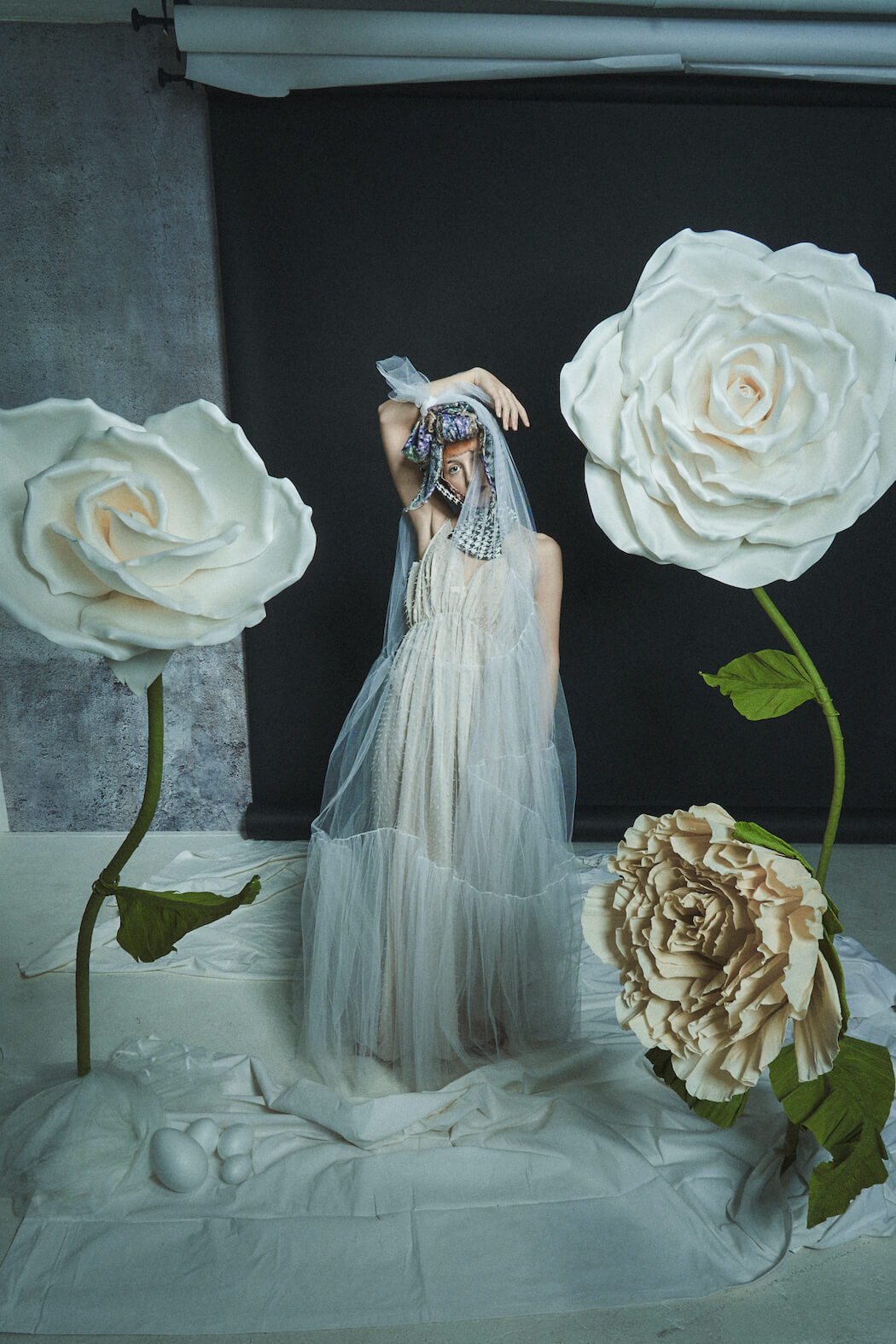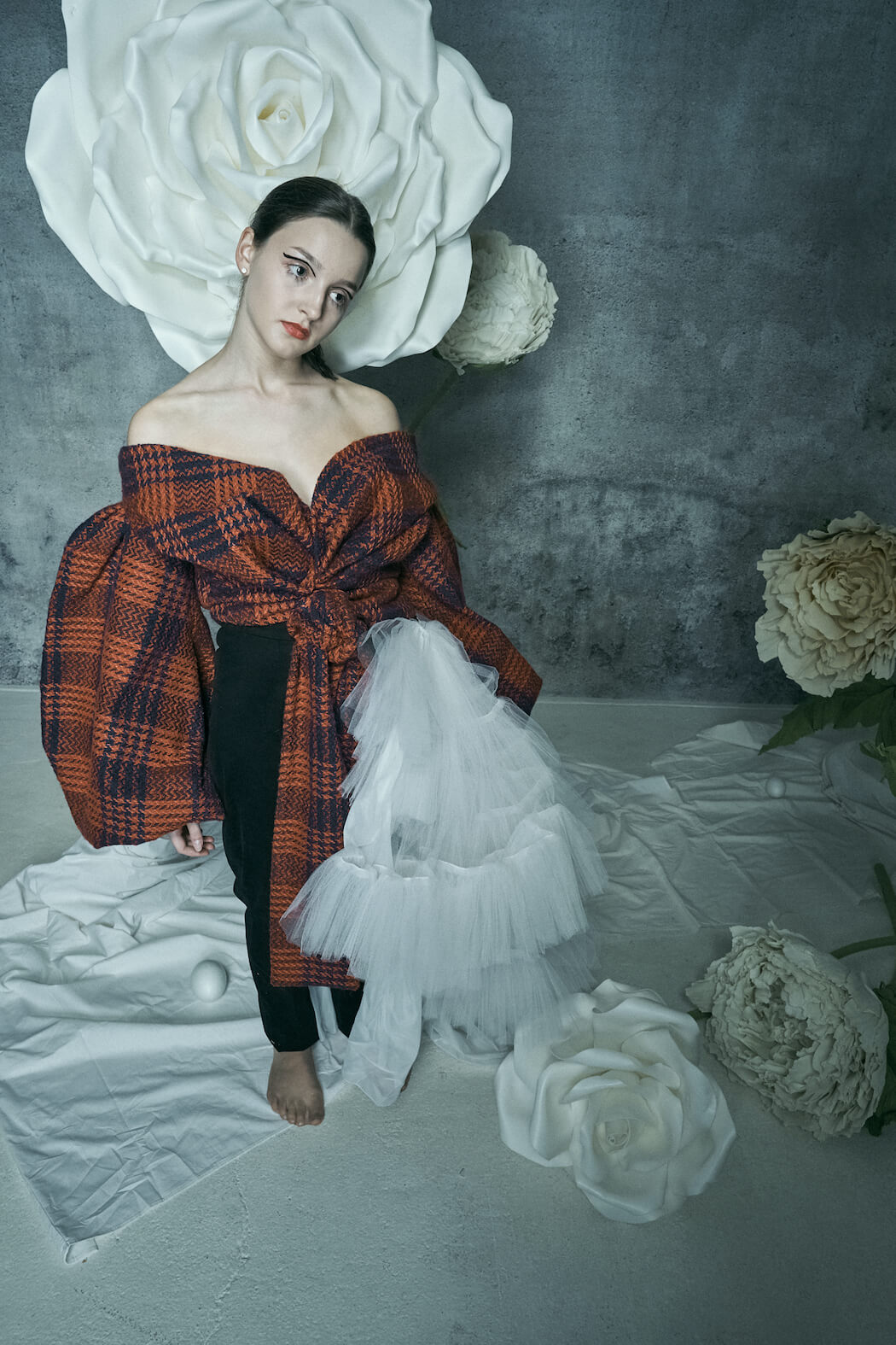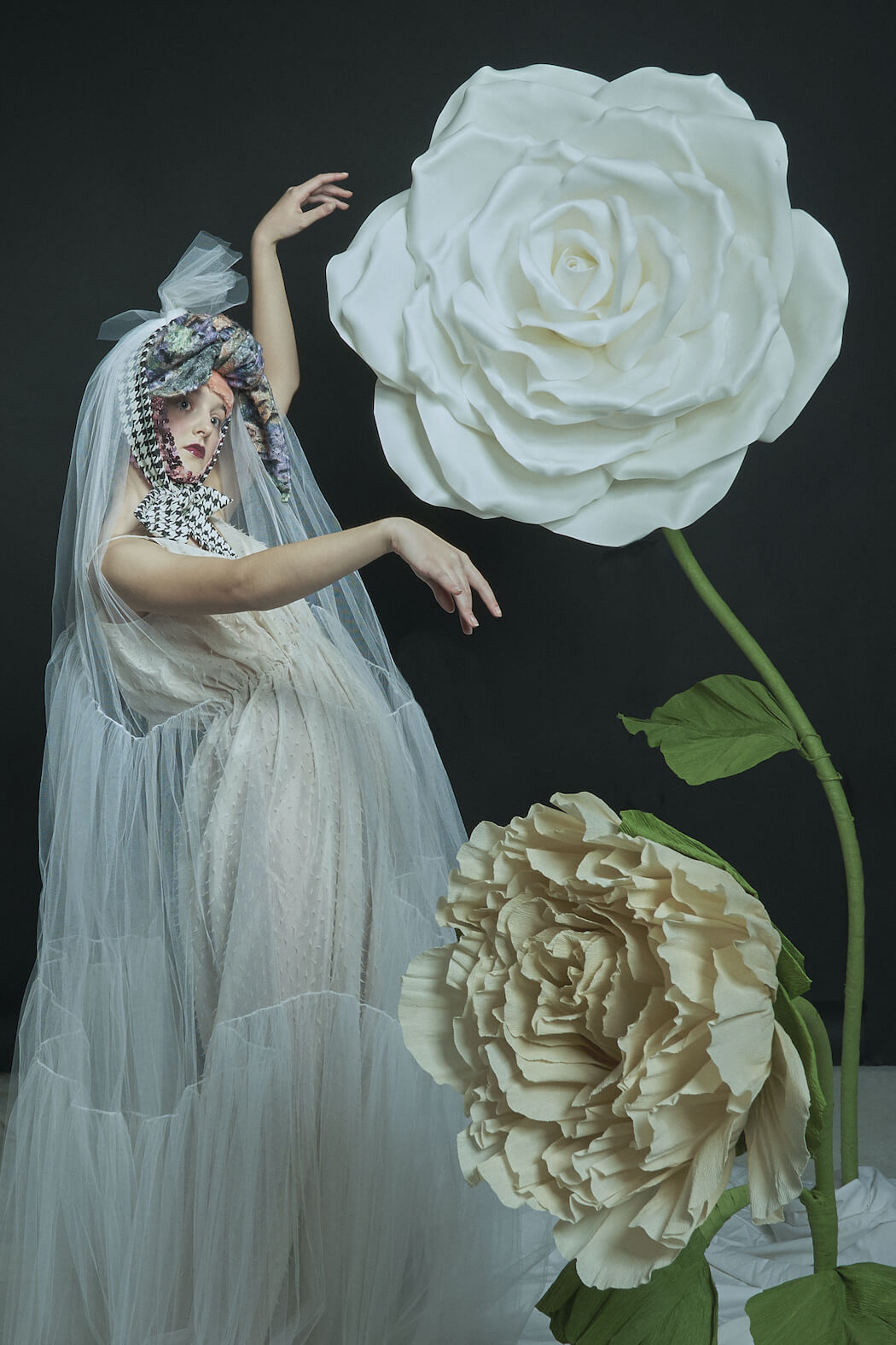 A KALTBLUT exclusive. Photography, Creative Direction & Set Design by Leandra García. All fashion by Eva Heugenhauser. Model is Karoline Schneider. Hair & Make Up by Leandra García. Flowers made by Fleurinna Dekor.