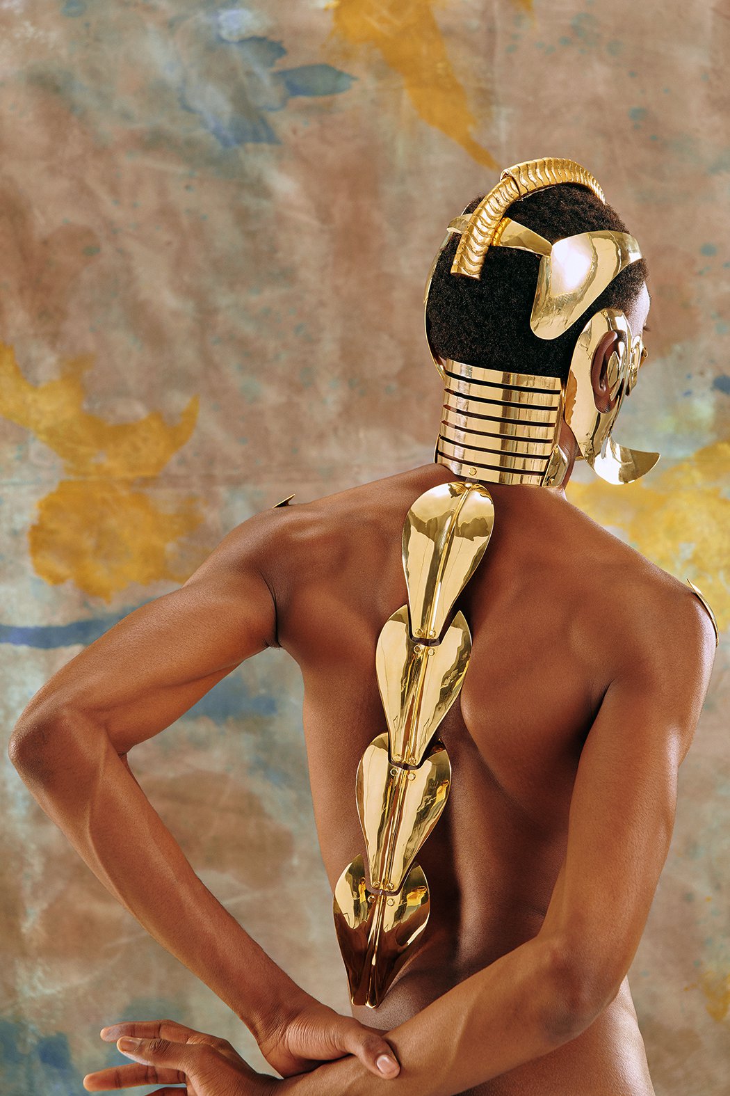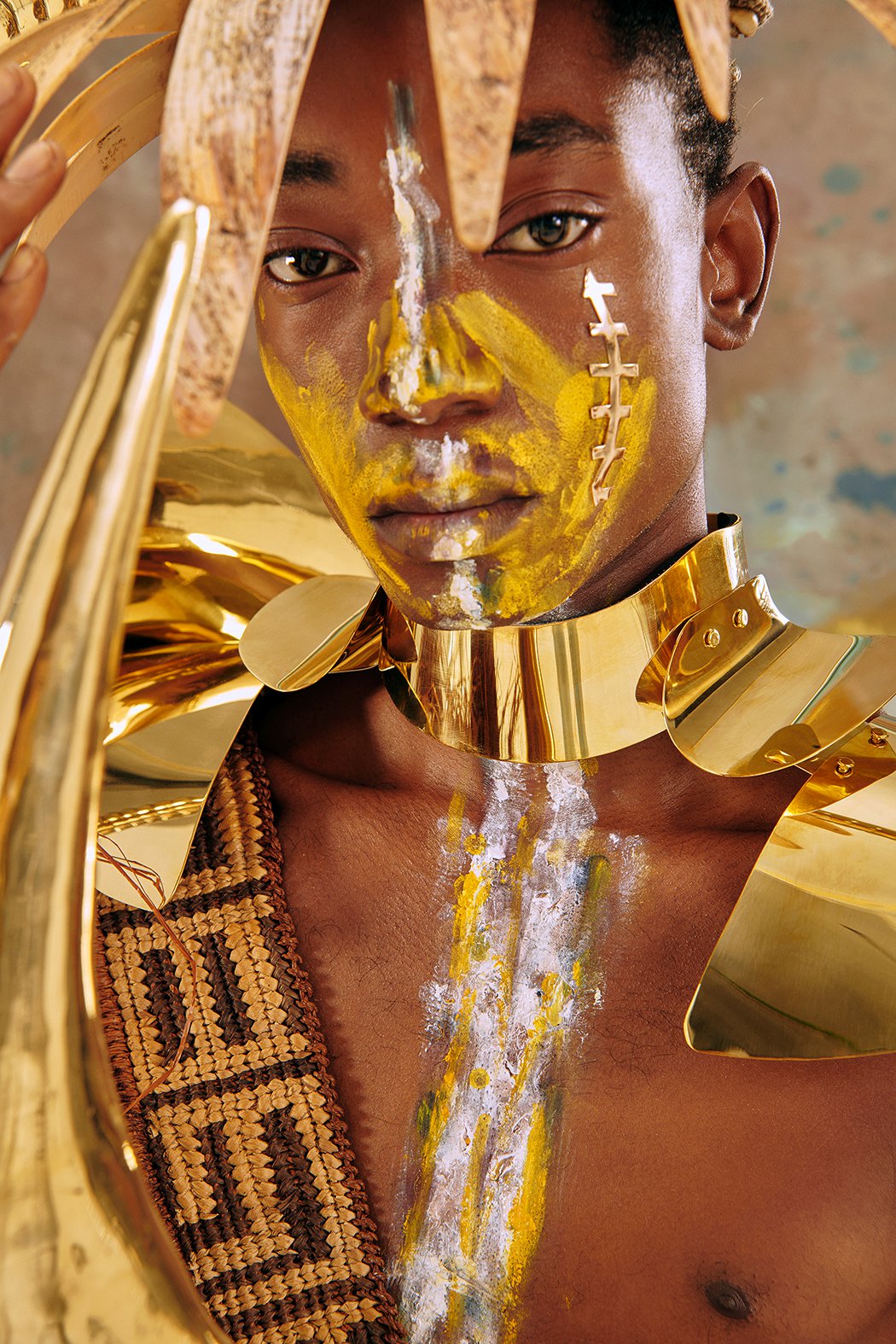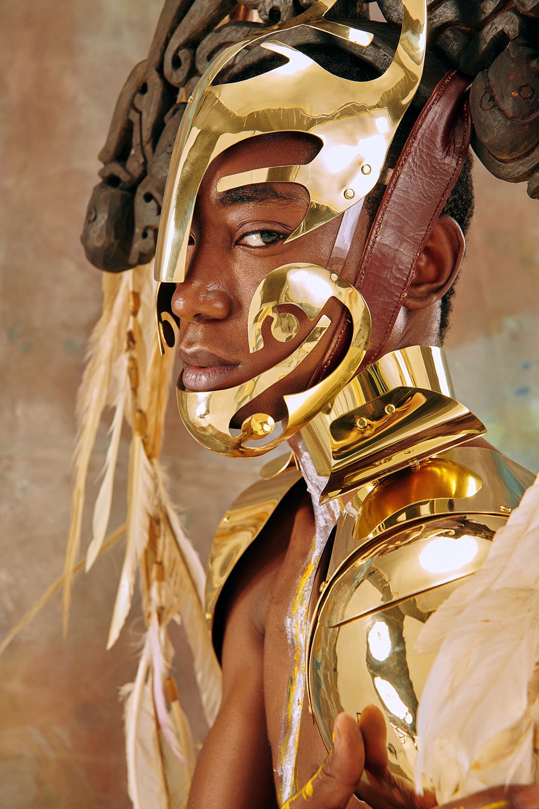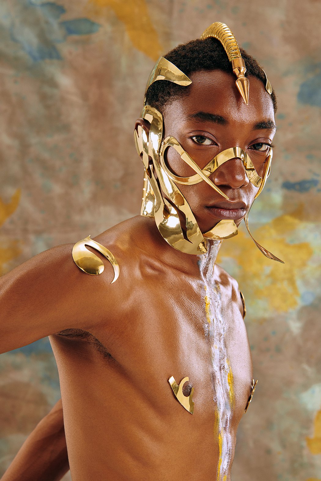 A KALTBLUT exclusive. Photography by Marc González. Art Direction by Manuel Albarran & Angel Cabezuelo. All Metal couture & Metal gear by Manuel Albarran. Model is Luis Mba at Elite Milan & Rock Men Model Managment Paris. Styling by Angel Cabezuelo. Make up & hair by Raquel Pintado.