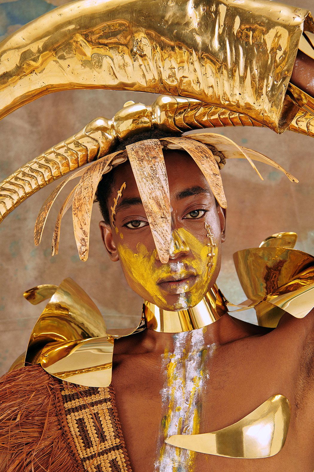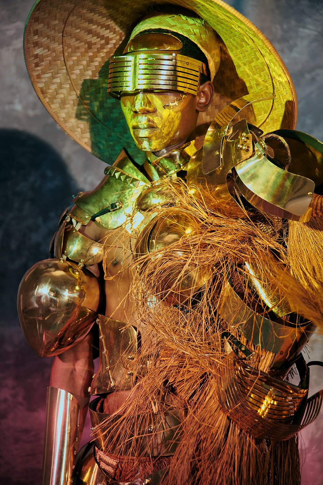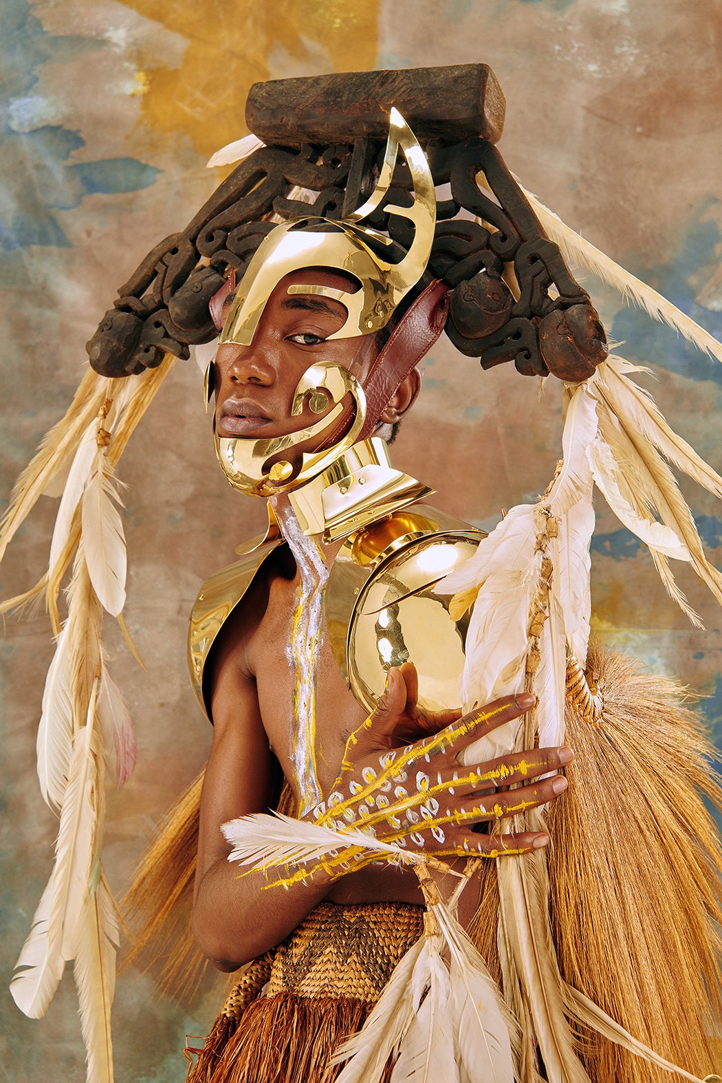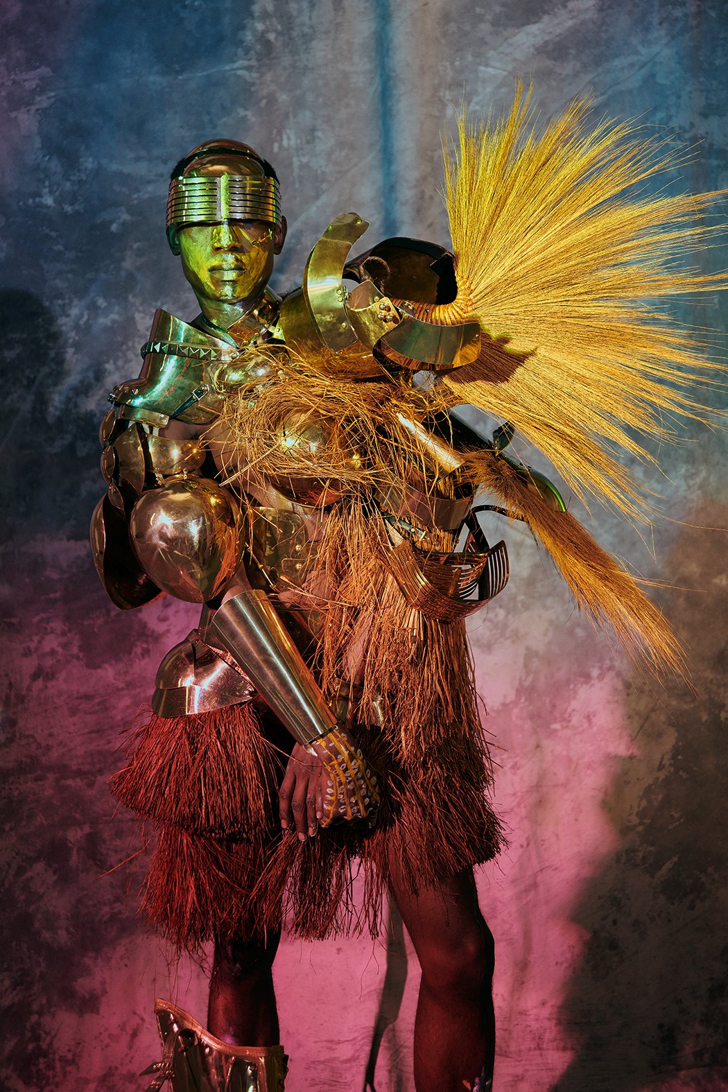 A KALTBLUT exclusive. Photography by Marc González. Art Direction by Manuel Albarran & Angel Cabezuelo. All Metal couture & Metal gear by Manuel Albarran. Model is Luis Mba at Elite Milan & Rock Men Model Managment Paris. Styling by Angel Cabezuelo. Make up & hair by Raquel Pintado.