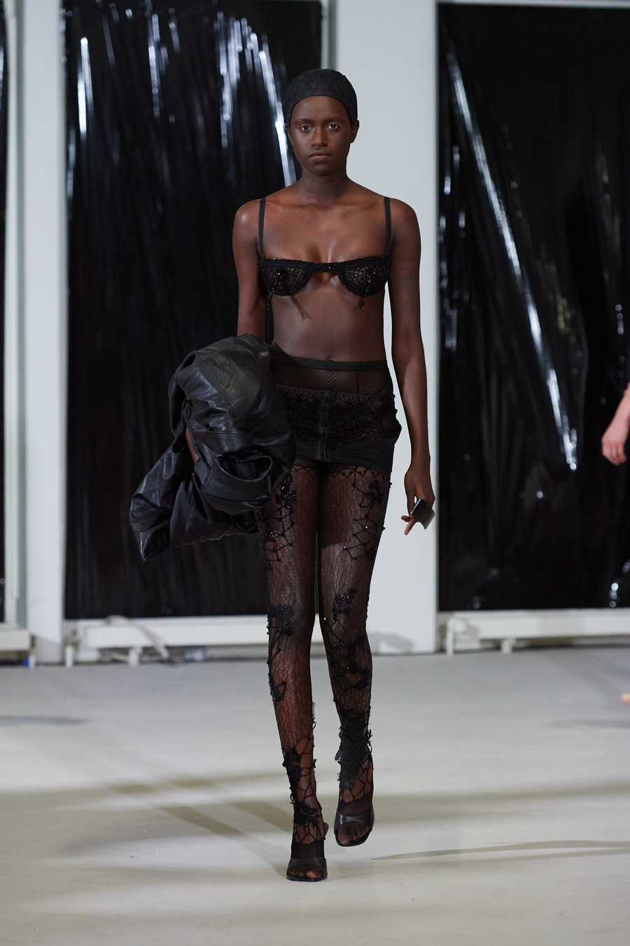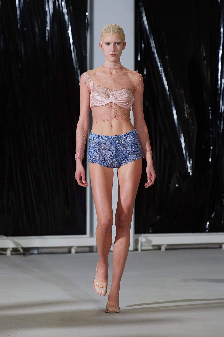 The fashion cognoscenti were met with skirts metamorphosed from brassieres, and leather jackets reimagined as luxury carryalls—artful embodiments of LOU DE BÈTOLY’s commitment to sustainability and the art of upcycling. Woven stories tell of fabrics handcrafted from dissected underwear and heritage stockings, with one ensemble presenting the mirage of denim, cleverly concocted from threads and shimmering sequins.