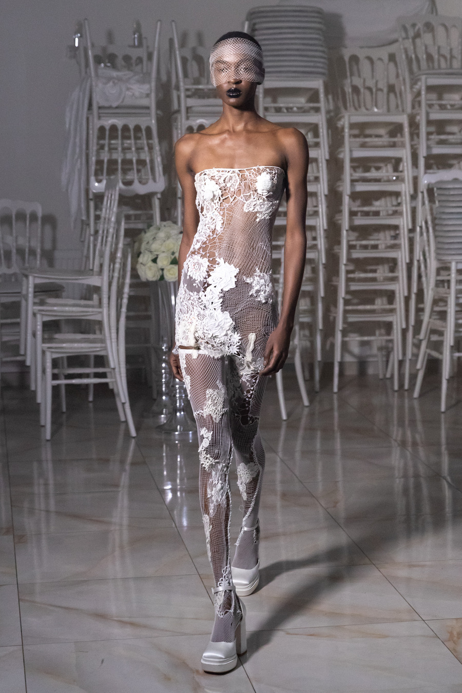 Spiked with calculated visual hyperbole and a touch of the macabre, these textile collages coalesced in a runway show that might just herald a new era of post-luxury high fashion.