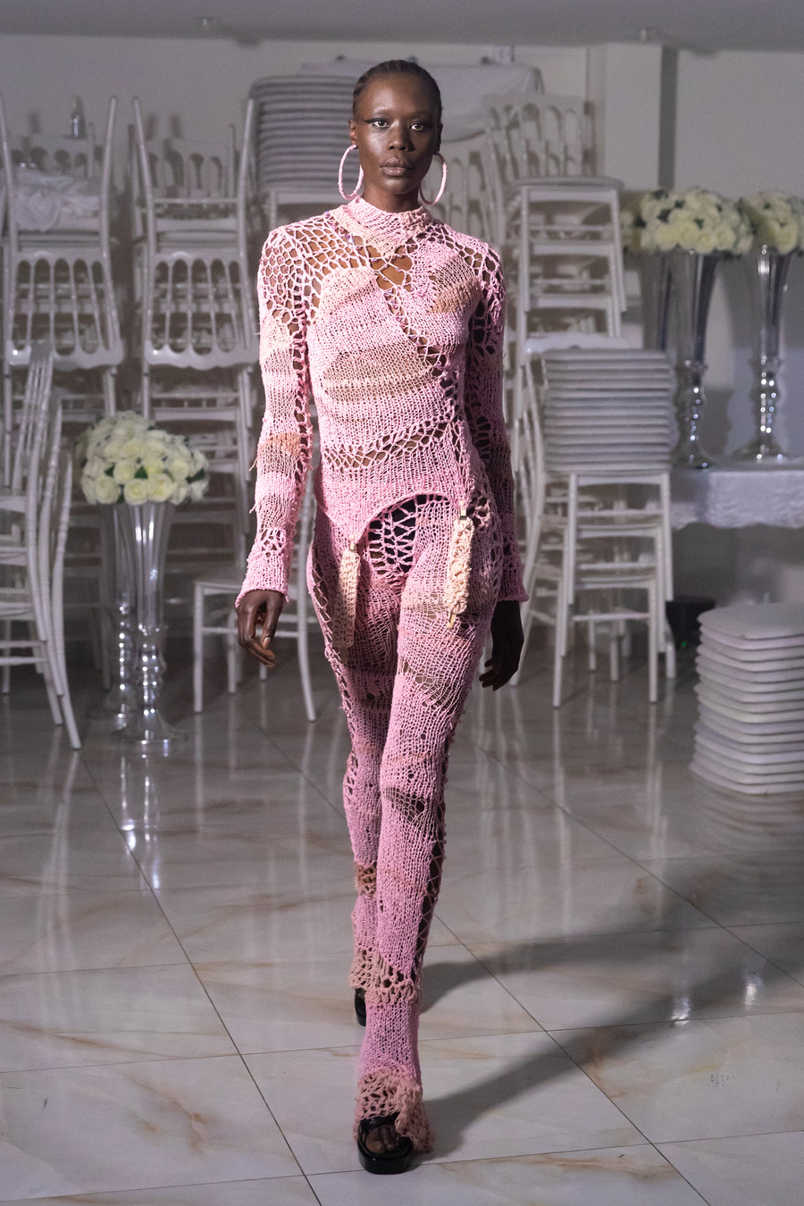 French designer and The Queen of Berlin Fashion Week LOU DE BÈTOLY presented the label’s F/W23 collection at the Queen Palace ballroom in Kreuzberg, Berlin. Drawing on signature handcrafting techniques such as knitting, crochet and embroidery, the label’s runway collection recasts waste material as luxury garments, toying with the concept of “excess” in all its forms.