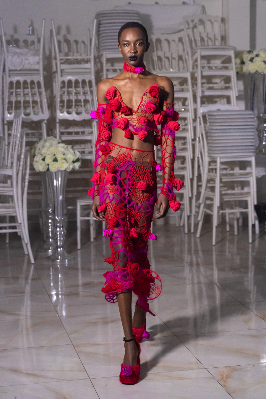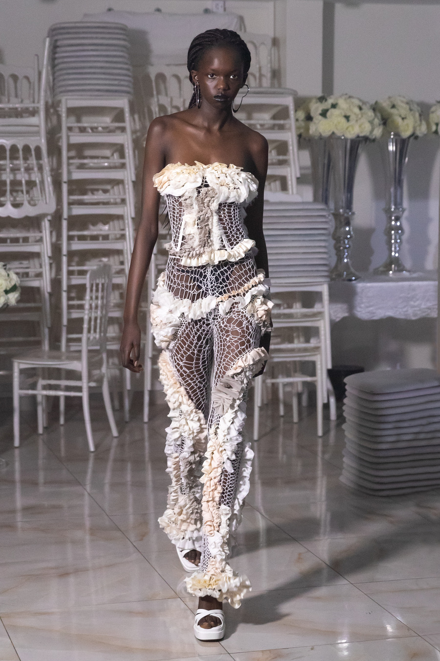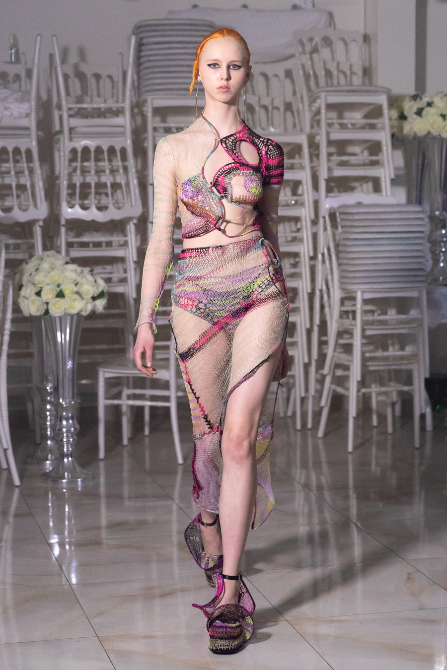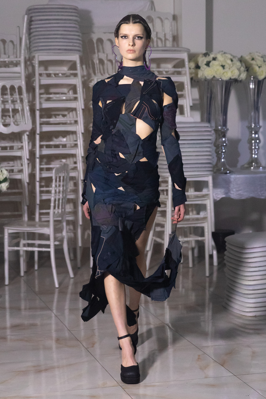Spiked with calculated visual hyperbole and a touch of the macabre, these textile collages coalesced in a runway show that might just herald a new era of post-luxury high fashion.