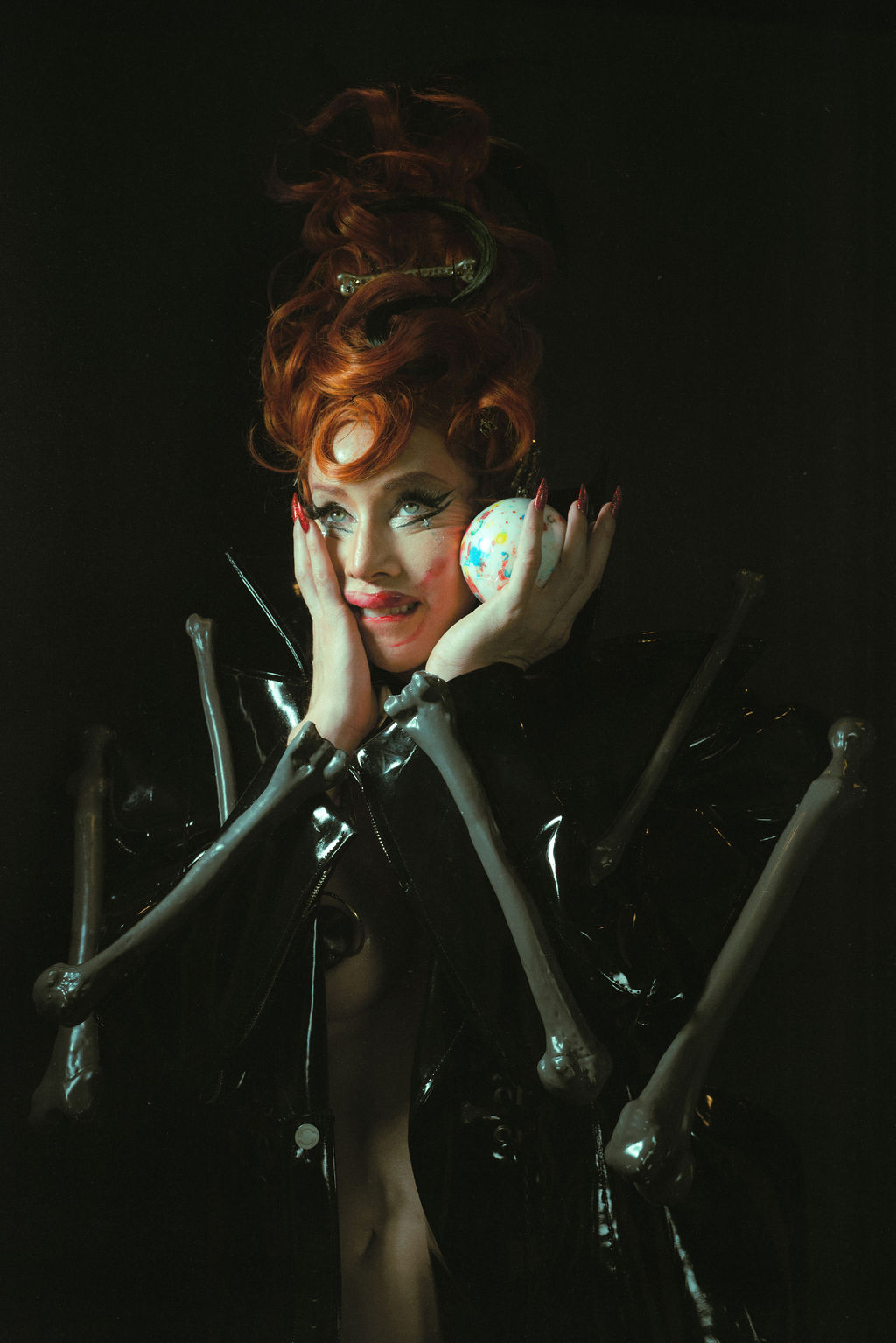 Raised in a rich cultural milieu, guided by her showgirl grandmother and retired Air Force veteran grandfather, Love’s story is one of resilience and tenacity. In a climate where anti-gay and trans legislation is alarmingly on the rise, she asserts, “It is imperative now more than ever that I exist as a form of resistance against that repression.” Through “SKULL FCKER,” she claims her power and privilege and utilizes her history to inspire and uplift her community.