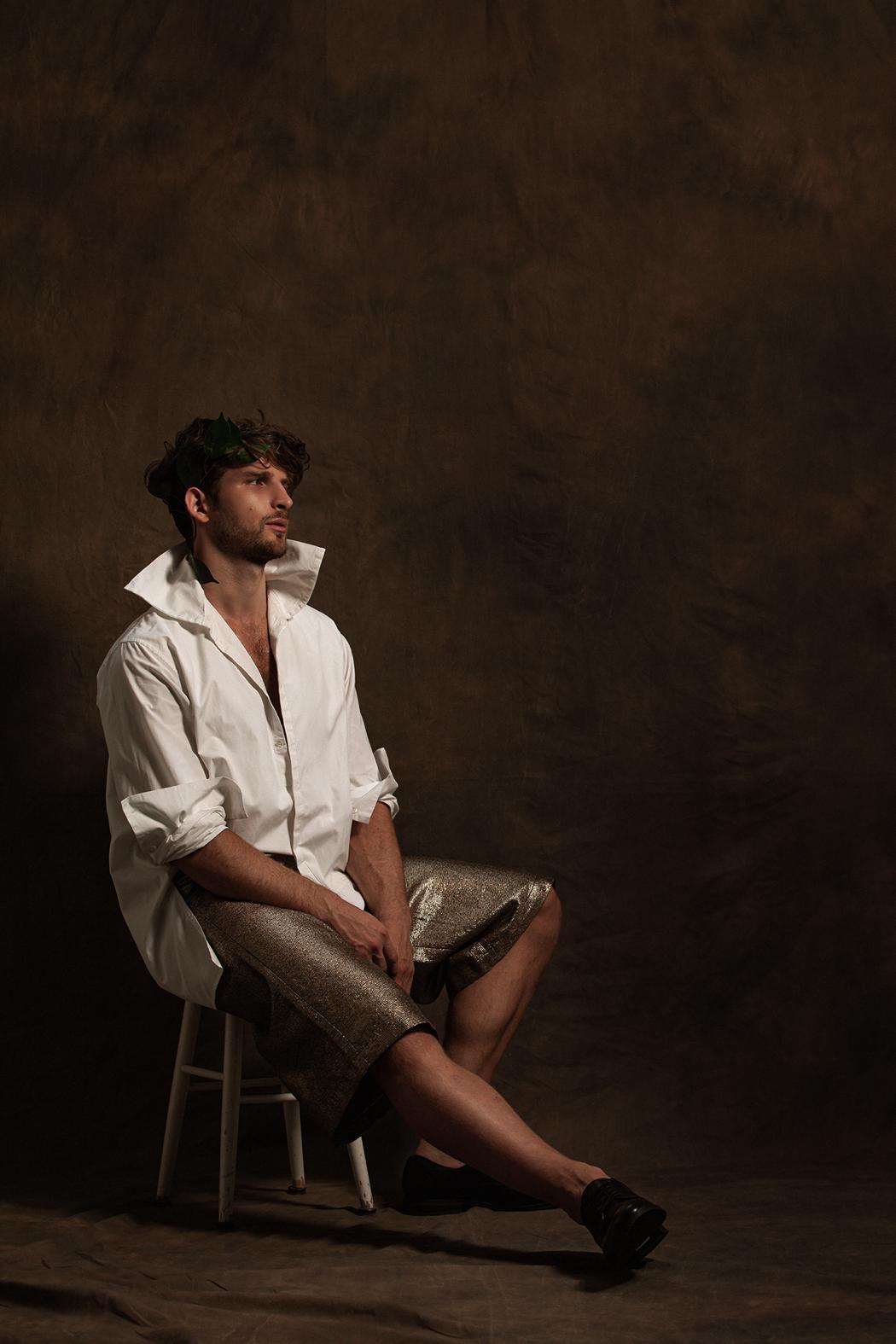 Christian Holthausen is a photographer based in Düsseldorf, Germnay. The series “LOVE CARAVAGGIO” was created in his studio. Holthausen and fashion stylist Andrès Megia from Spain had the idea for a collaboration and Andrés the idea of making a series inspired by the works of the Italian Renessaince painter Caravaggio. The play with light and shadow and the romanticized look appealed to both of them. Model is Konstantin Resch.