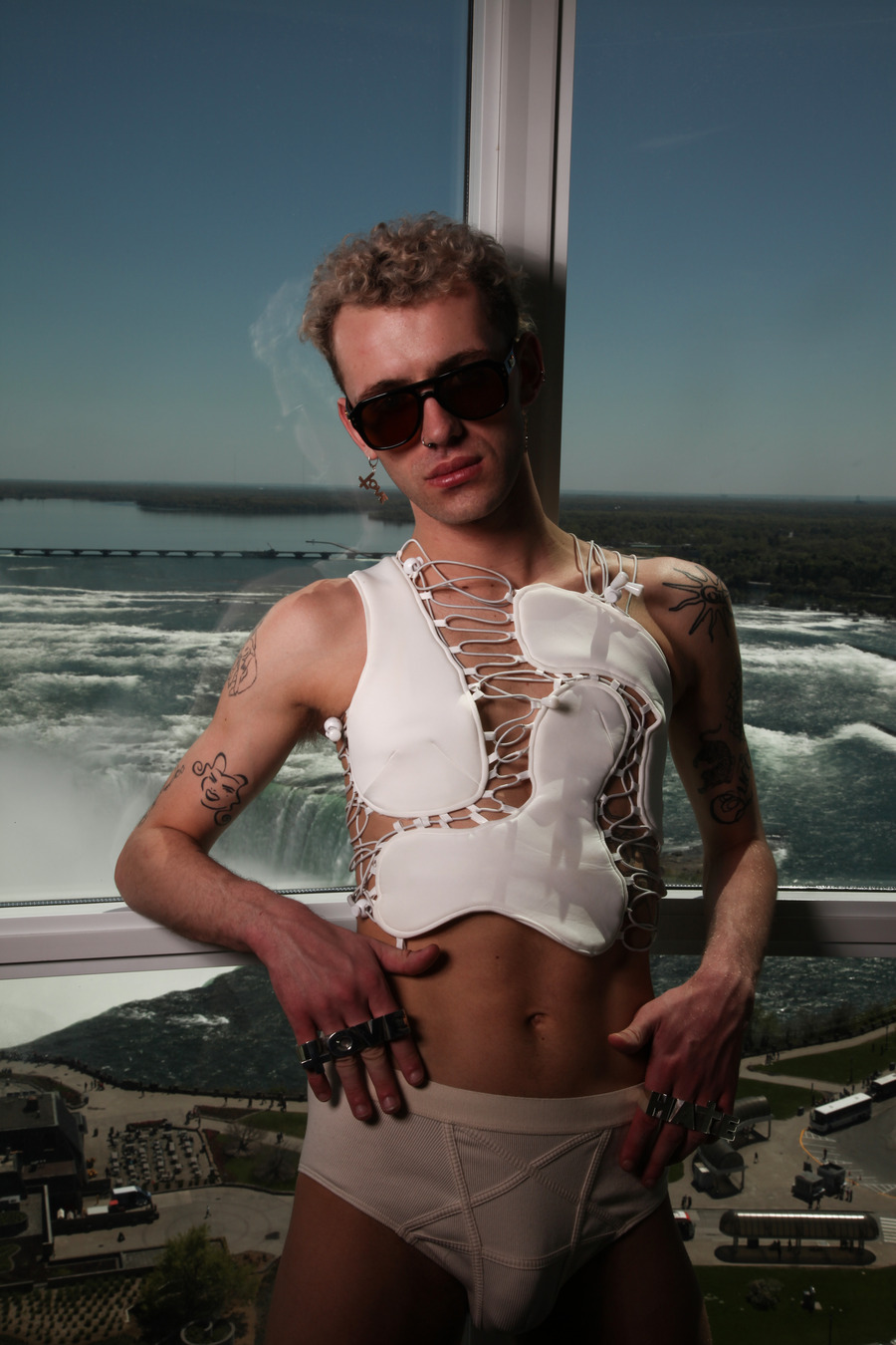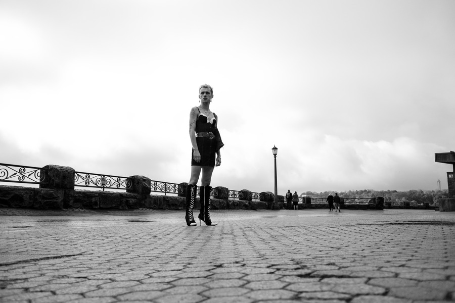 Drawing inspiration from the cinematic reverie of “The Night of the Hunter” by Charles Laughton and “Niagara” featuring Marilyn Monroe, this journey started in Toronto and snaked through Niagara Falls to Port Elgin, LaBruce’s birthplace. Accompanied by model and DJ Ewan Ferguson and sound composer Florian Kehbel, the group seeks to shatter conventional markers of good and evil.