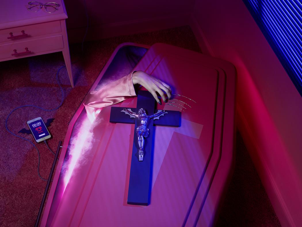 ‘Súper Fuerte Studio’ is a creative studio based in Spain that encompasses the entire production process of any commission: From the creative concept to post-production. We have our own photographic studio where we make out most of the projects. ‘Love Song For A Vampire’ is an editorial narrative project, a classic work with a film look. “We show the day to day of a vampire who has suffered a strong emotional breakdown in different situations and rooms in her home.”