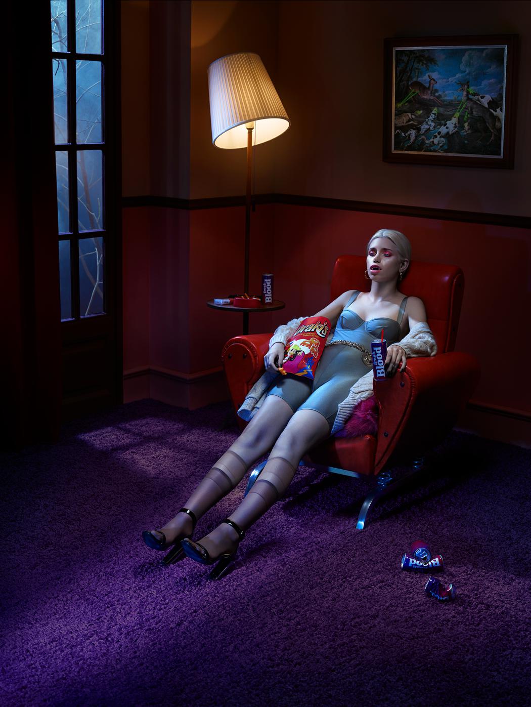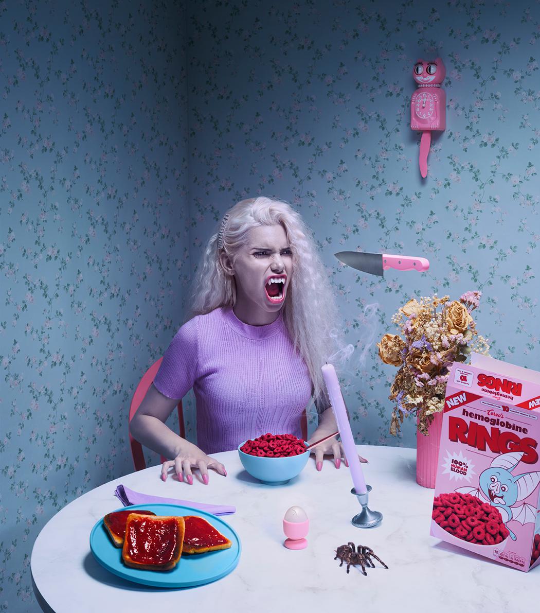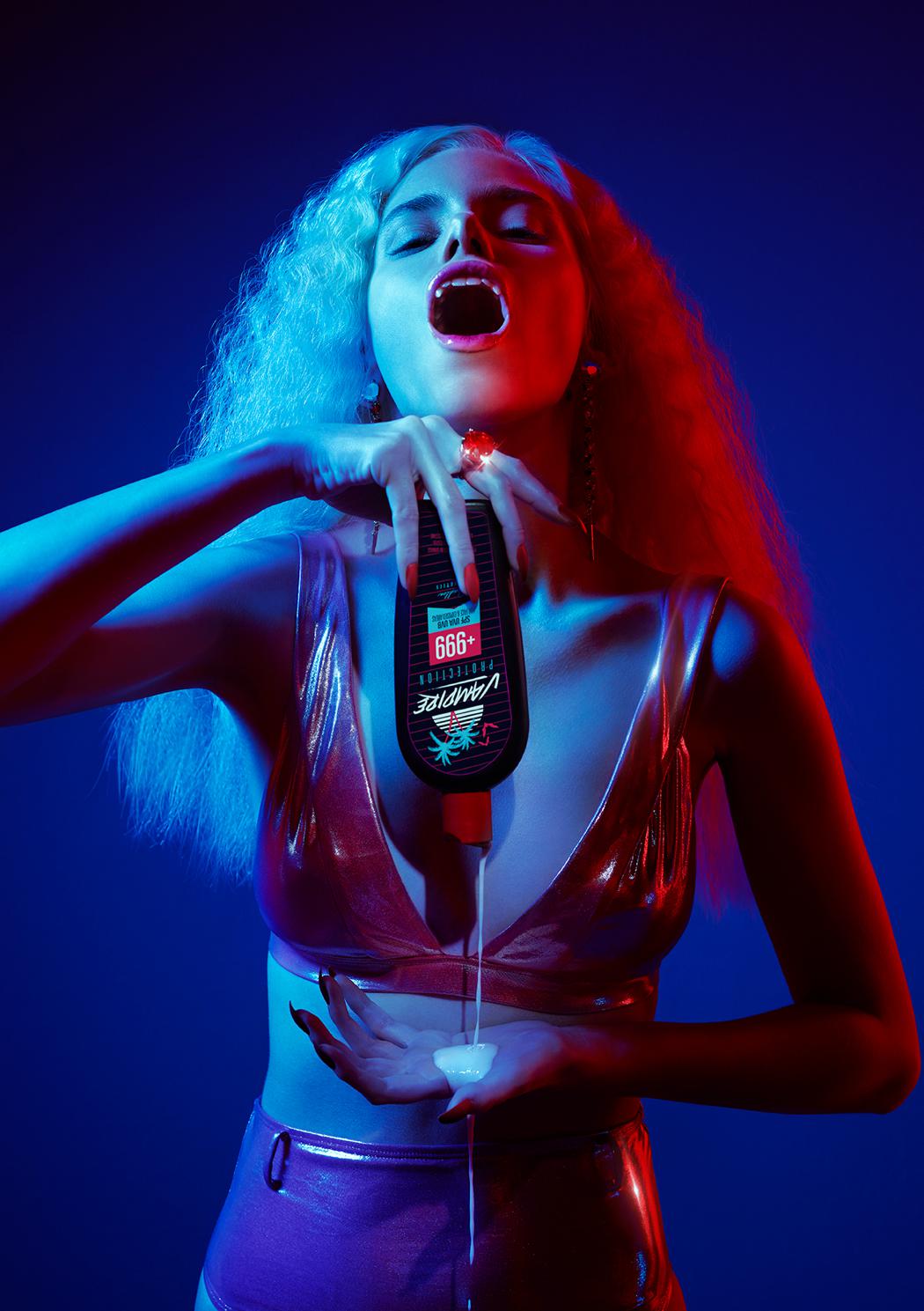 ‘Súper Fuerte Studio’ is a creative studio based in Spain that encompasses the entire production process of any commission: From the creative concept to post-production. We have our own photographic studio where we make out most of the projects. ‘Love Song For A Vampire’ is an editorial narrative project, a classic work with a film look. “We show the day to day of a vampire who has suffered a strong emotional breakdown in different situations and rooms in her home.”