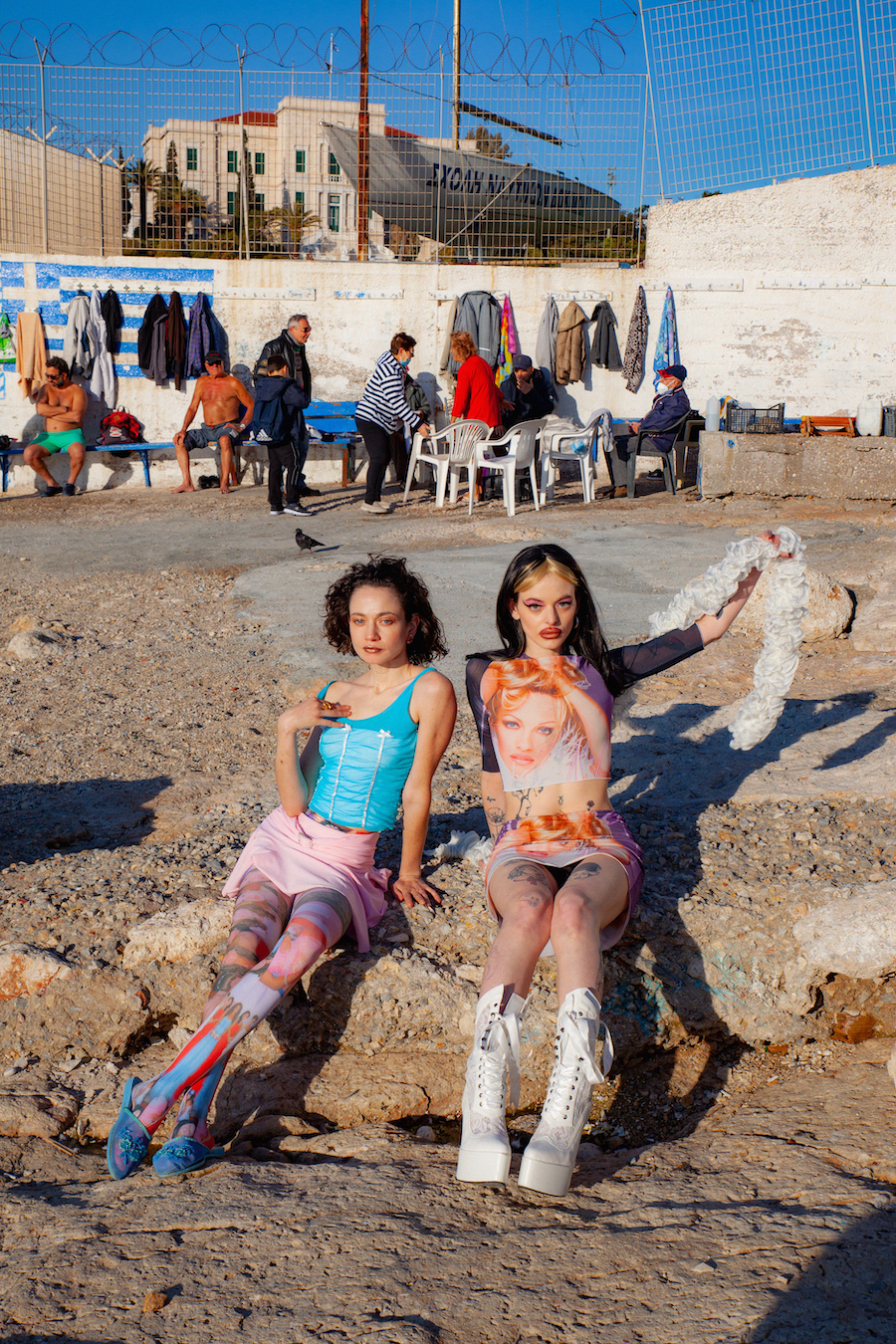 A KALTBLUT exclusive. Photography by Peggy Theodorogianni. Art Direction & Styling by Valeria Chrampani. Models Amie and Sasha. Make up by Sasha. Fashion by 00sgarms, Christiana Hajipapa, Tytm8, Nodress, Serapis Maritime, Axelle Dufresne.