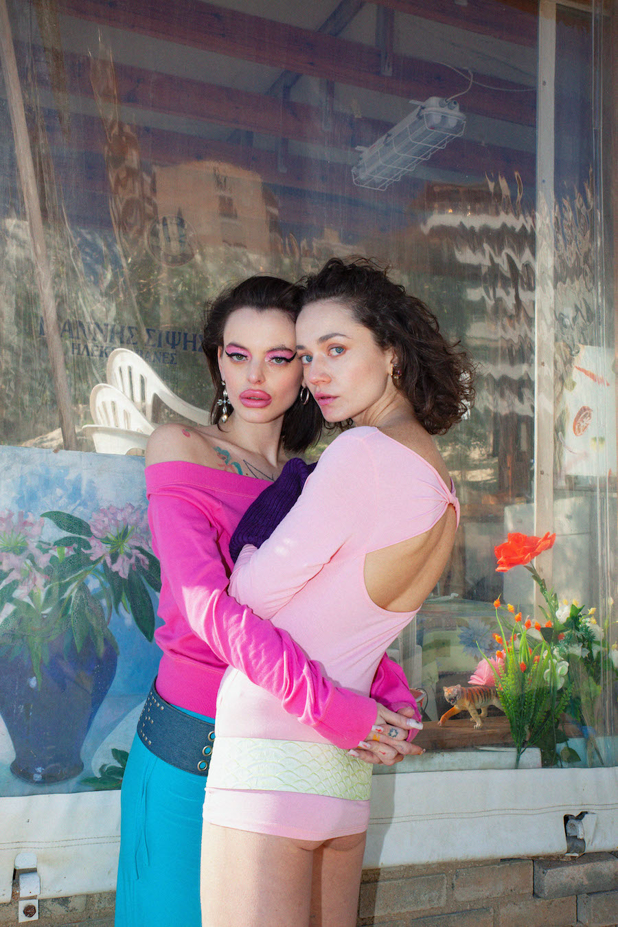A KALTBLUT exclusive. Photography by Peggy Theodorogianni. Art Direction & Styling by Valeria Chrampani. Models Amie and Sasha. Make up by Sasha. Fashion by 00sgarms, Christiana Hajipapa, Tytm8, Nodress, Serapis Maritime, Axelle Dufresne.