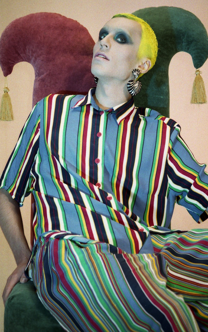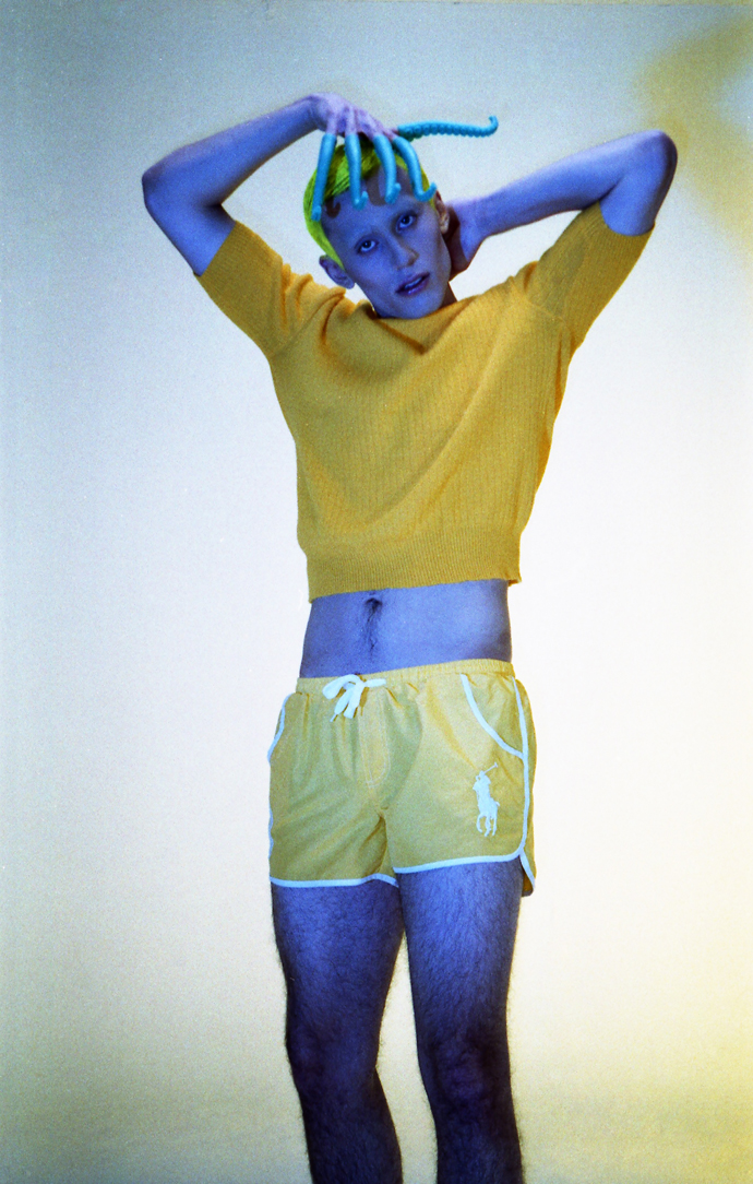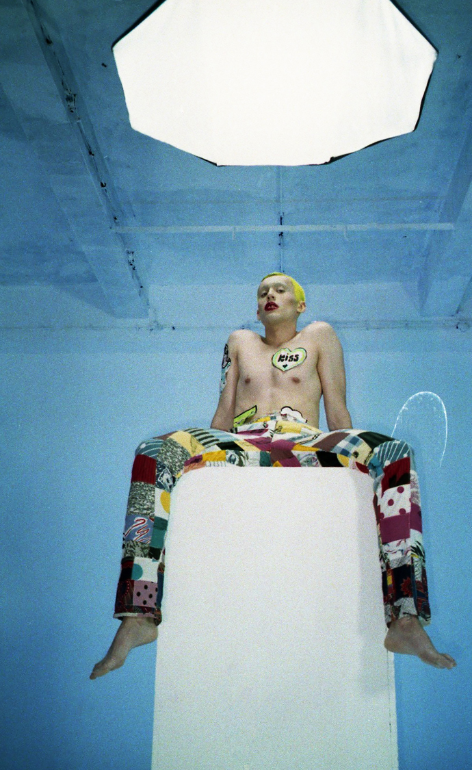 A KALTBLUT exclusive menswear editorial from Poland. Art direction and photography by Grzegorz Mikrut. Model is Kacper signed to AS Management. Styled by Oli Hajn. Hair and make up by Koleta Gabrysiak. “A trashy and deconstructed version of a photoshoot. Made with 5 Euro Canon camera, no retouch, I wanted to have an 80´s feeling of Berlin mixed with London. It’s an opposite of high fashion.” says the photographer. Fashion from New Lady in Town Vintage & Art Store. Special thx to STUDIO CZARNOBYL.