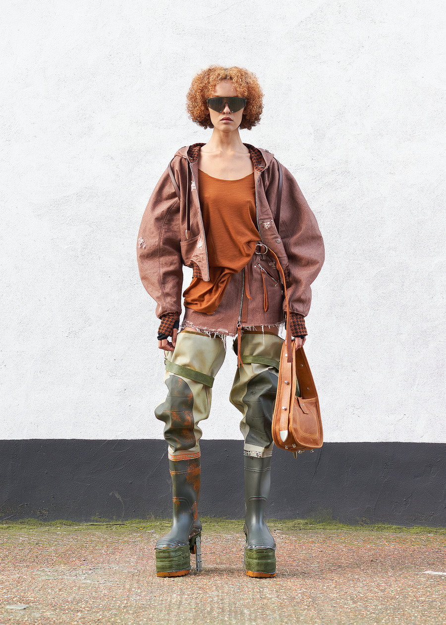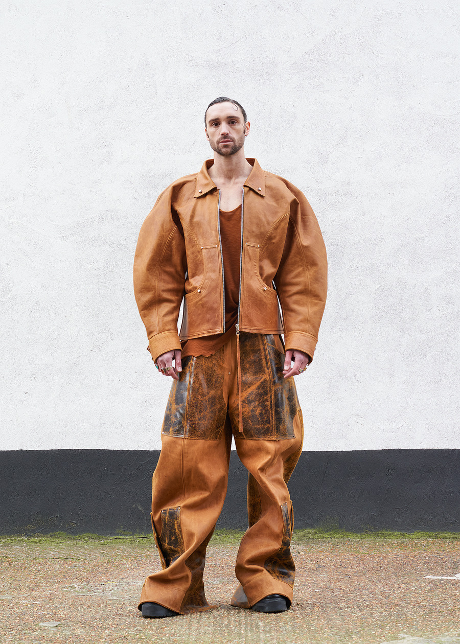 In a striking nod to the duality inherent in being a Gemini, the collection encapsulates the intriguing tension of self-discovery and transformation. The designer’s eclectic journey—from the stables of equestrianism to the realms of hospitality, and finally into fashion—is a narrative rendered into fabric. With roots anchored in a life brimming with robust, utilitarian garments, they have gracefully evolved, embracing a looser, more sensual silhouette influenced by their formative years in Berlin.