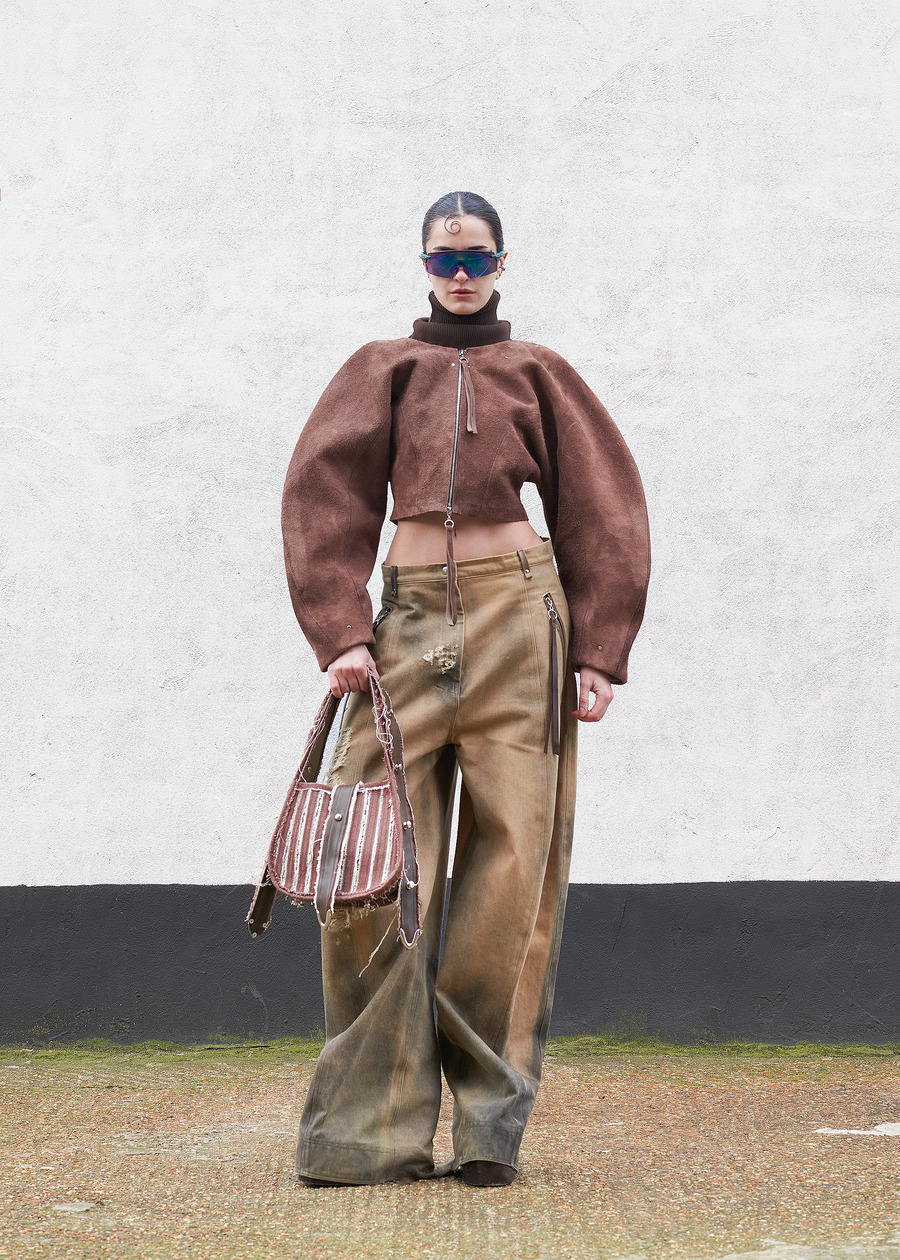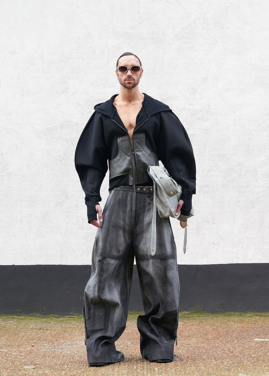 In a striking nod to the duality inherent in being a Gemini, the collection encapsulates the intriguing tension of self-discovery and transformation. The designer’s eclectic journey—from the stables of equestrianism to the realms of hospitality, and finally into fashion—is a narrative rendered into fabric. With roots anchored in a life brimming with robust, utilitarian garments, they have gracefully evolved, embracing a looser, more sensual silhouette influenced by their formative years in Berlin.