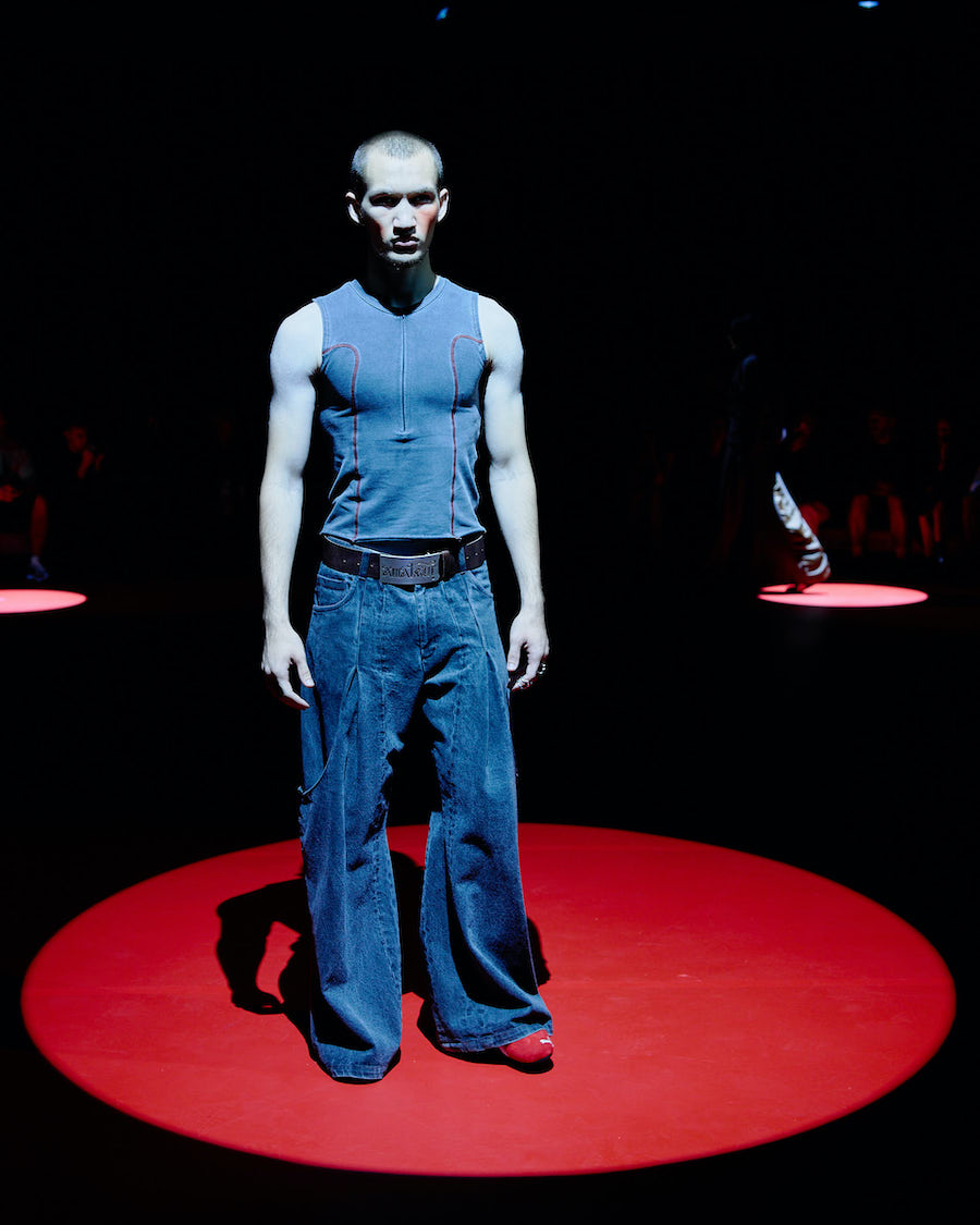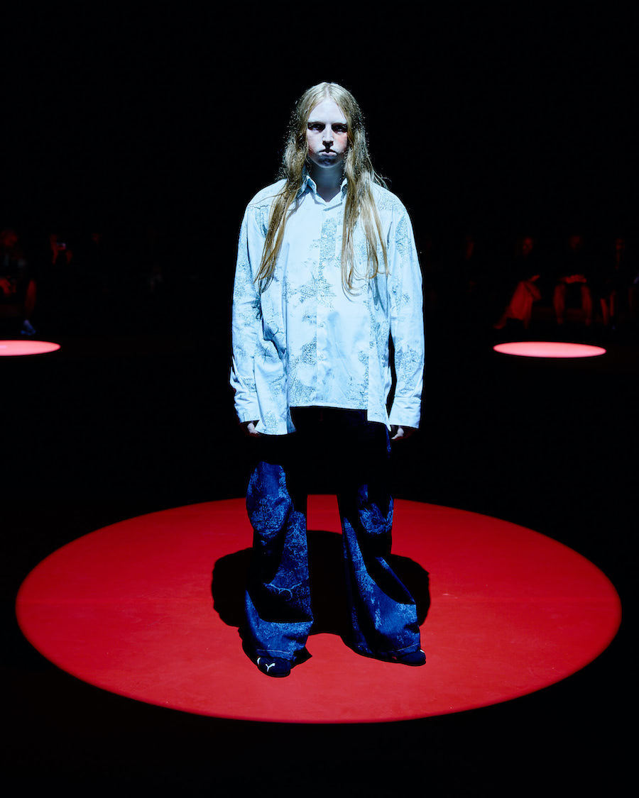 Born in Hamburg and coming from a lineage of health practitioners, Marie Lueder’s fashion narrative stands out with accentuated knee panels, dual-tone denim, ruched Bombers, and recurring spiral motifs. These elements reflect her deep engagement with the anxieties of modern life. After launching her eponymous label at London Fashion Week in February 2020, Lueder has described her clothing as metaphorical armour, inspired by overcoming mental challenges. With a background in fashion design from the University of Applied Sciences in Hamburg and a Master’s in Menswear from the Royal College of Arts in London, Lueder has swiftly risen to recognition. Her partnerships with esteemed retailers like Browns Fashion in London, H. Lorenzo in L.A., and Slam Jam in Milan highlight her growing influence. This year, she proudly won the Berlin Contemporary Prize by the German Fashion Council.