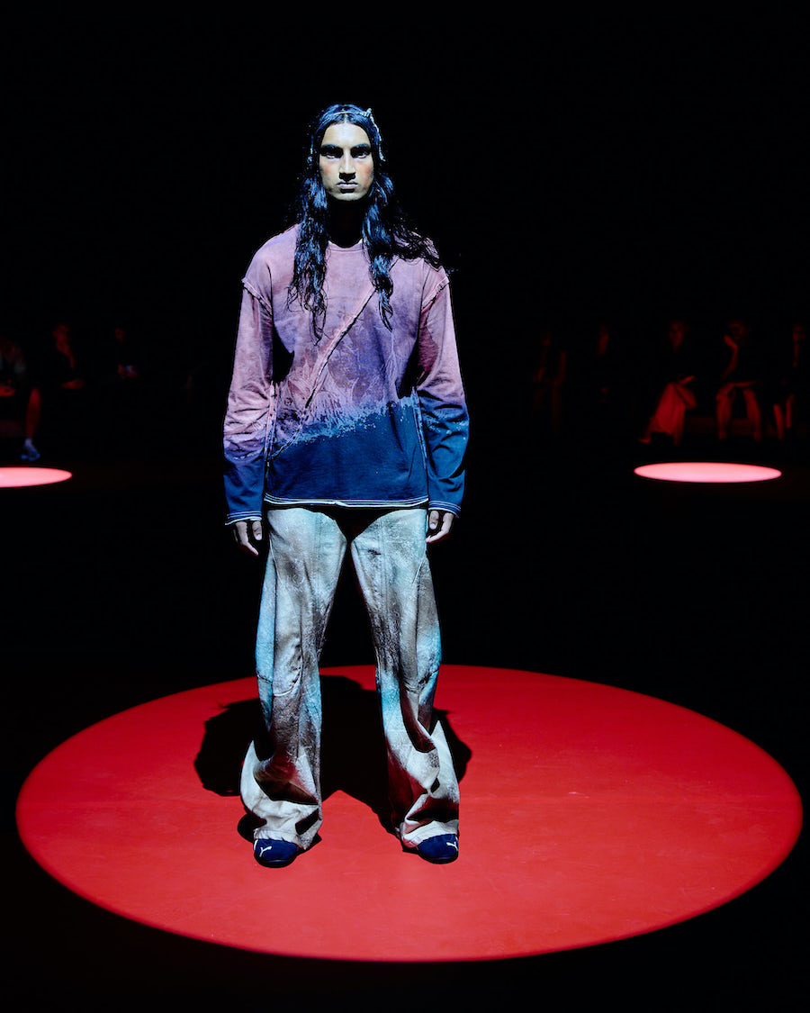 A special shout-out goes to the sponsors: Puma (Yannic Akinyosoye and Angelique Houben), and material sponsors and collaborators Tintoria Emiliana for their innovative and sustainable techniques. Key collaborators included Atelier Viscera for jewellery, artist David Varhegyi for movement, Kyyberwall for music, Mia Violet for airbrush art, and Tati Cotliar for styling and consultation.