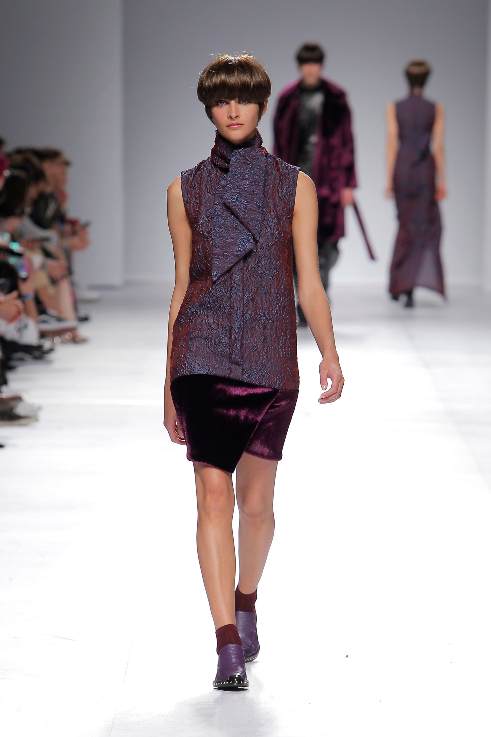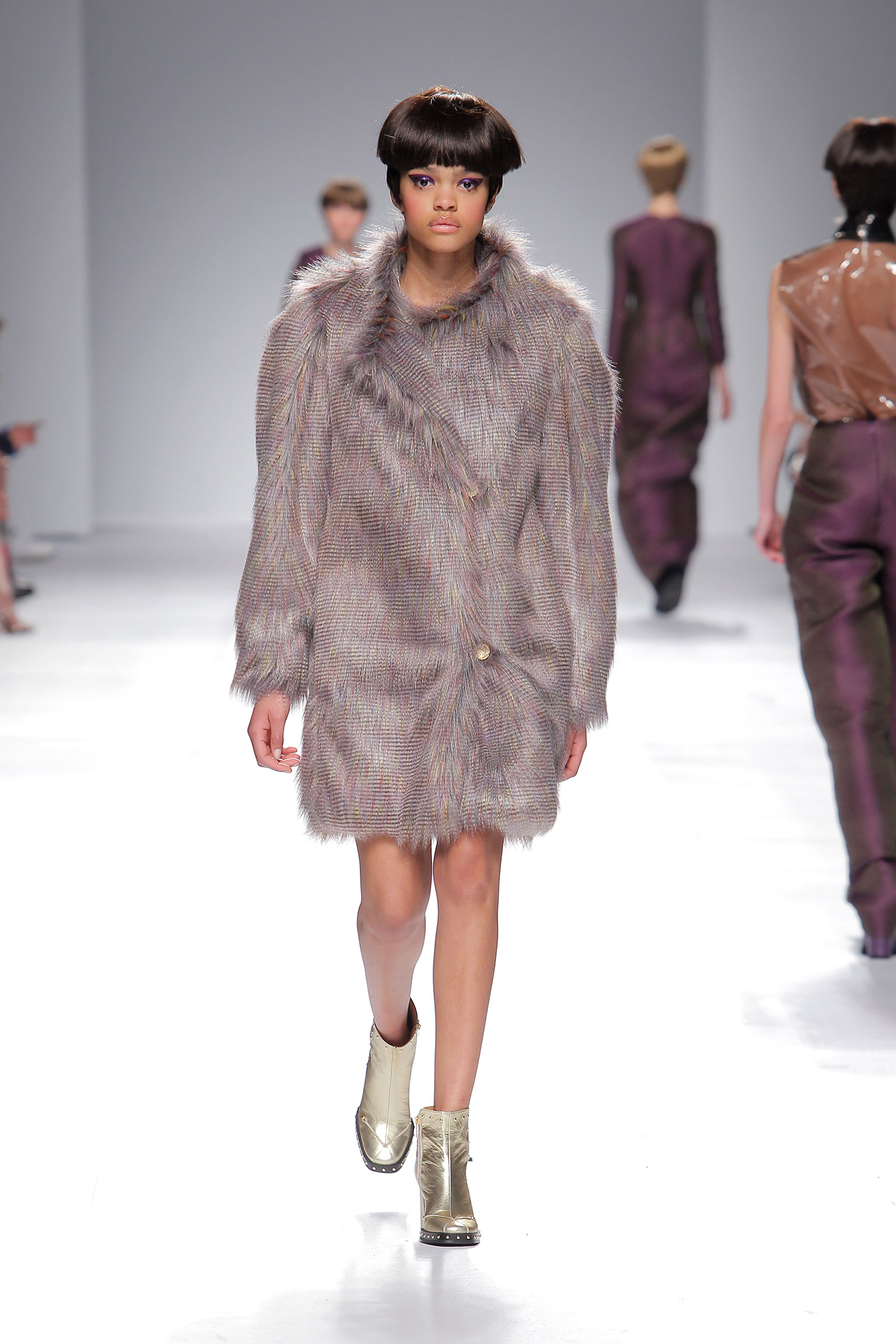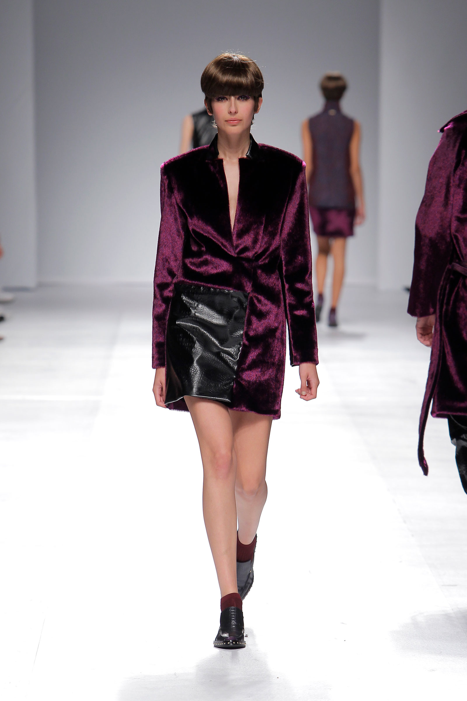#ModaLisboaN.50! Award winning designer Luís Carvalho unveiled his new Fall / Winter 18/19 collection: UNDER YOUR SKIN during the fashion fest in Portugal. For the next winter season the inspiration comes from the big cities’ buildings, where we find disguised textures and forms of animal skin, bringing us straight and oversized shapes. The city lights give us details and finishings. The 60’s come as a reference for the silhouette, some materials and graphics. Looks are built in strong contrasting colours. Royal blue, purple and black with graphics stand out in structured materials like jacquard, synthetic fur and vinyl. Watch the full runway show below.