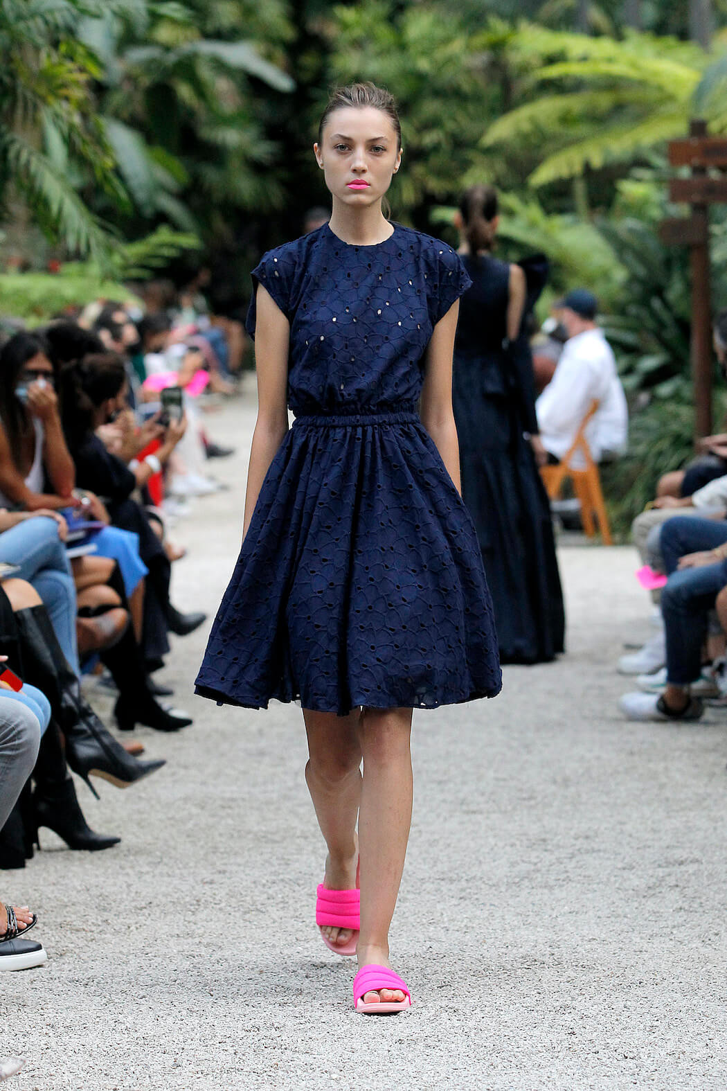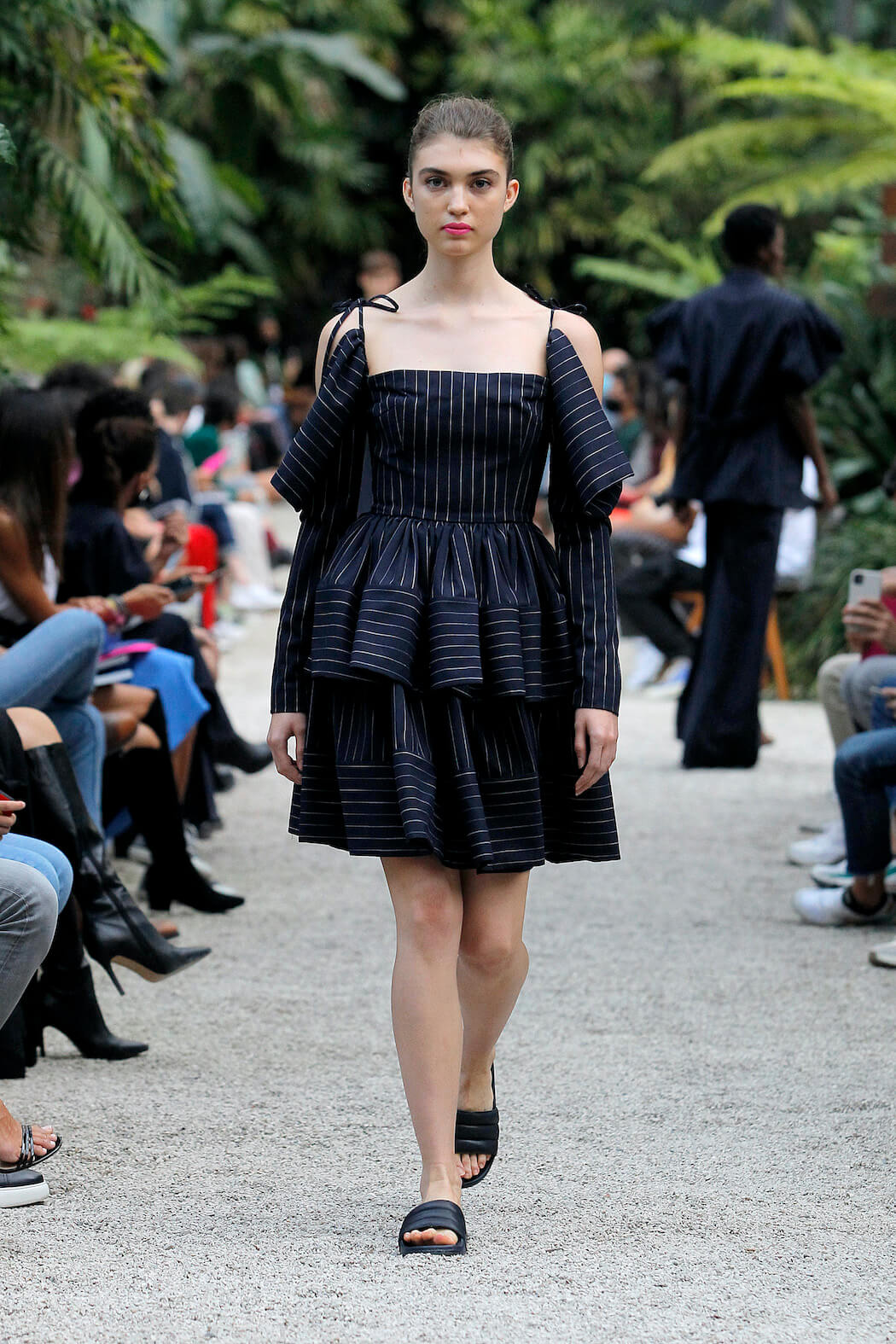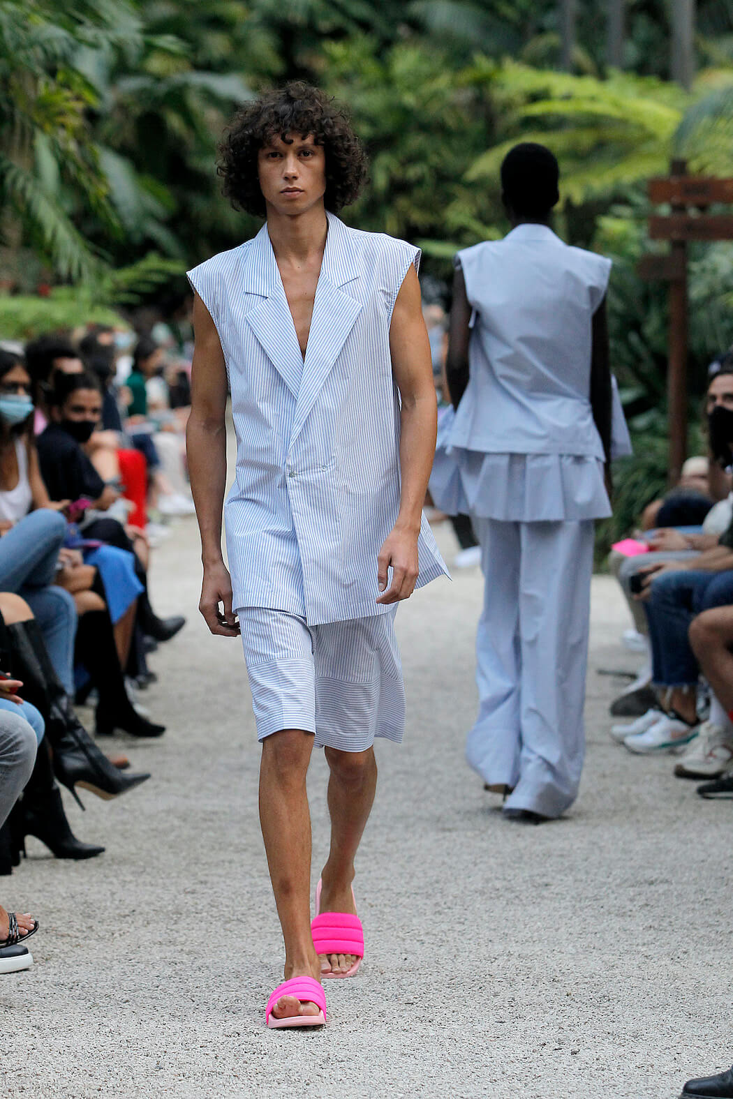 An army of beauty at #ModaLisboa. Our friend Luís Carvalho unveiled his new S/S21 collection during the fashion fest in Lisbon. Clear. Positive. Bright. Fresh. The new S/S21 collection brings us a new light, a new shine, new silhouette and new materials. A collection with a mix of sport and classic. Materials like linen, cotton and taffeta appear in a palette of white, ecru and navy blue in contrast to fluor pink.
