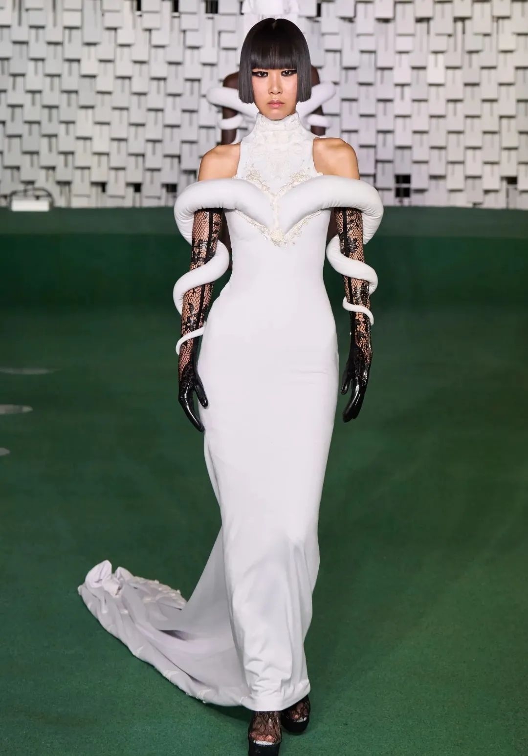 Luis de Javier’s debut at Paris Fashion Week for Spring/Summer 2025 was nothing short of a serve! Under the watchful eye of mentor Riccardo Tisci, the London-based Spanish designer hit the Parisian runway with a collection that blended haute couture glam with his signature wild, avant-garde flair.