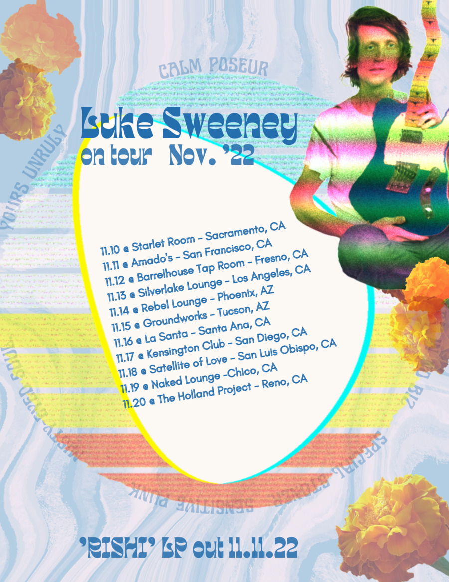 Luke Sweeney has been hailed as a “Pillar of San Francisco’s garage-psych community”, and that is no vacuous pomp on anyone’s behalf. you’d be hard-pressed to find a songwriter of his calibre and with such a colourful palette of sounds and influences up his sleeves. Luke Sweeney is a man of vibrant and incisive perspective, unafraid of pop heresies and melodic syncretisms, but it’s the plaintive fundamentals of his troubadour-like lyricism that really set him apart, not only in the already weird woo-woo San Francisco scene but everywhere else he sets a foot in.