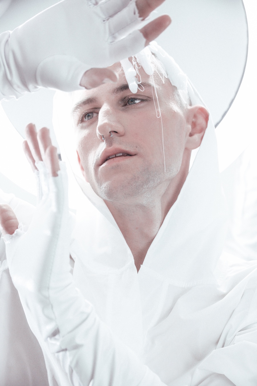 A KALTBLUT exclusive. Photography & Creative Direction by Jure Perisic. Styling & Art Direction by Silvio Ivkic. Hair Stylist is Shotaro Terashima. Makeup Artist is Flavio Costa. The models are Matheus M and Adam N. Light as quiet rebellion! Every system begins with a promise: order, safety, stability. Yet the structures built to protect us often become the ones that quietly reshape us. What is designed to create control slowly begins to define the body itself, disciplining it into form. George Orwell warned of systems created in the name of control, systems that people continue to believe in even when they no longer work.