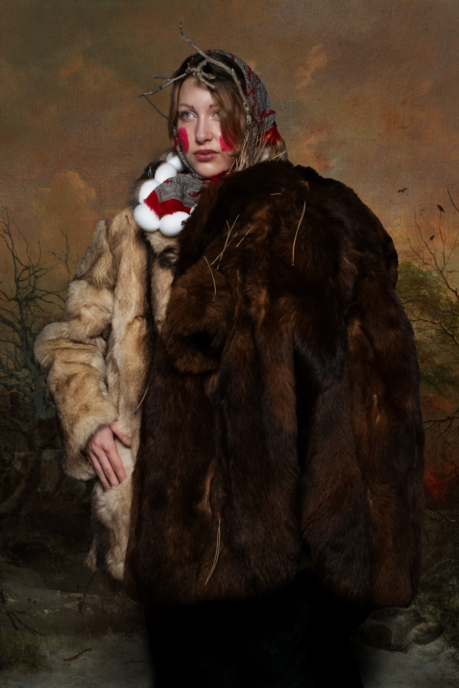 A KALTBLUT exclusive editorial from Prague, Czech Republic. Photography and creative direction by Eliška Lubojatzká. The models are Maika Robin and Lesuth. Jewellery styling & belt design by Neokunst. White robe designed by Orlando Mariano. Magic Bodies is the name of a series of photographs exploring topics connected to identity, transformation and collective experience through ambiguous feminine figures of West Slavic folklore.