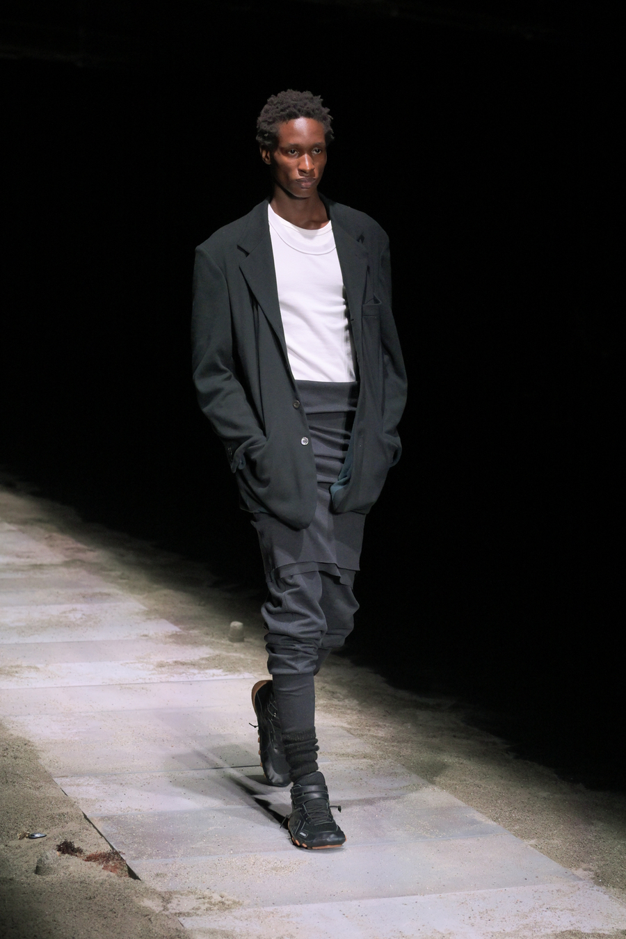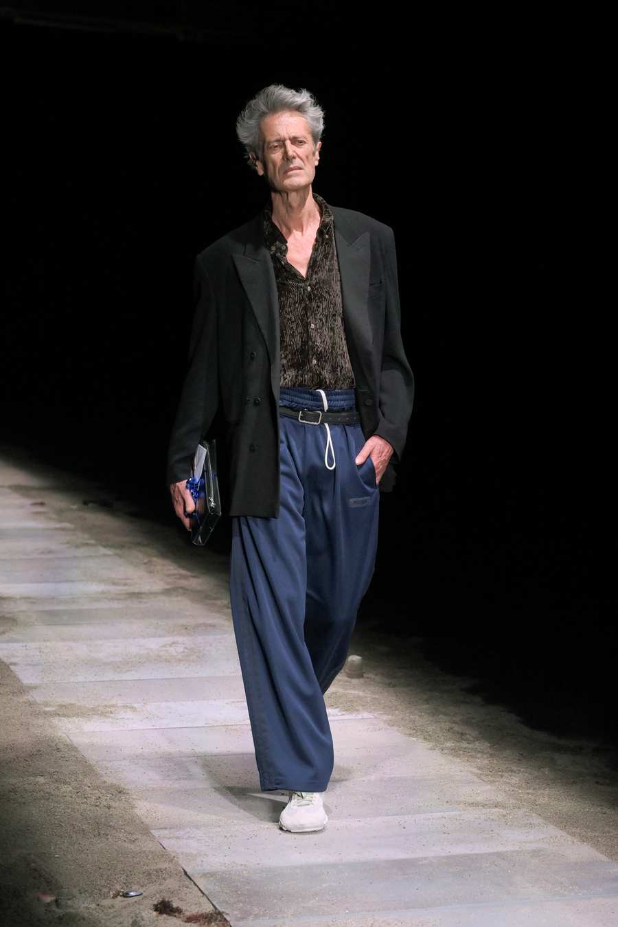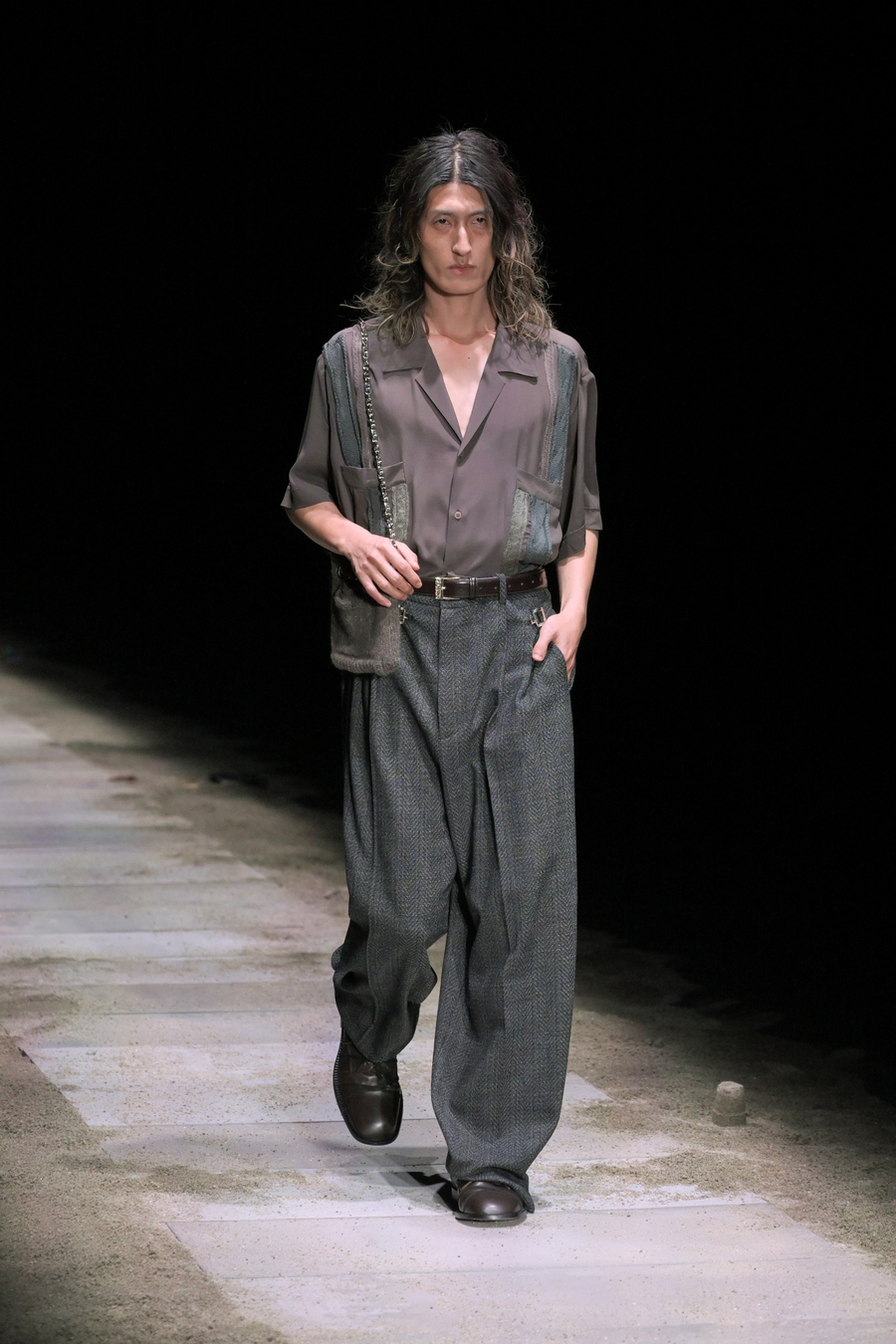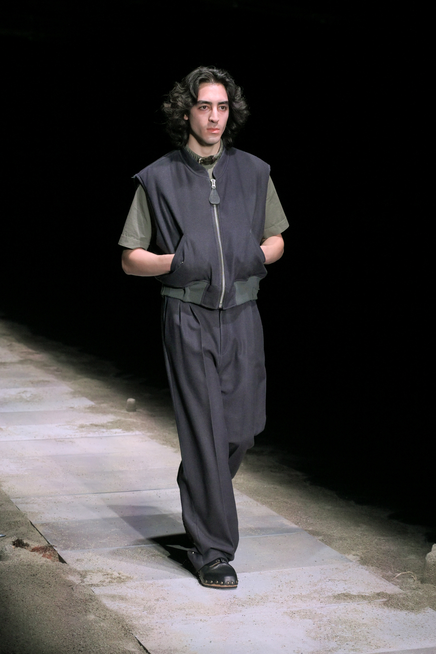 The prints featured throughout the show told stories of bygone eras; remnants of lost civilizations, echoes of mythological nightclubs, and fragments of cherished youth seamlessly blended into the fabric of the garments. Antique-like jewellery emerged as treasure unearthed from the sands of time: sweat-drenched chains and bracelets glimmering with mystique.