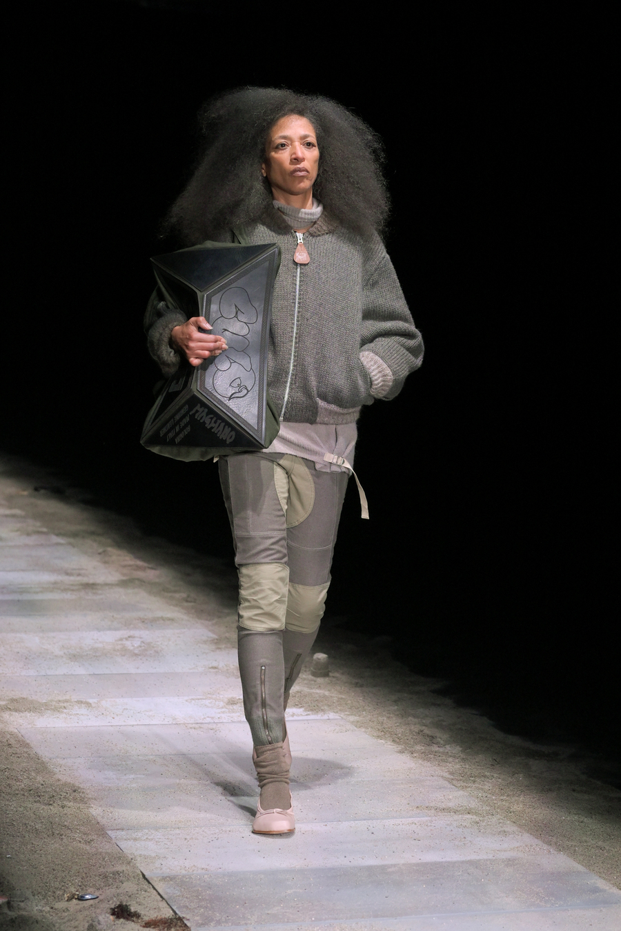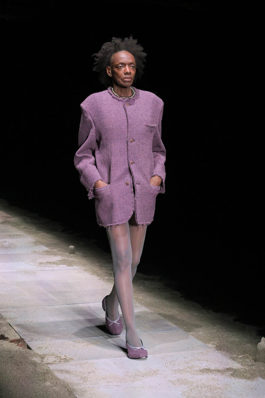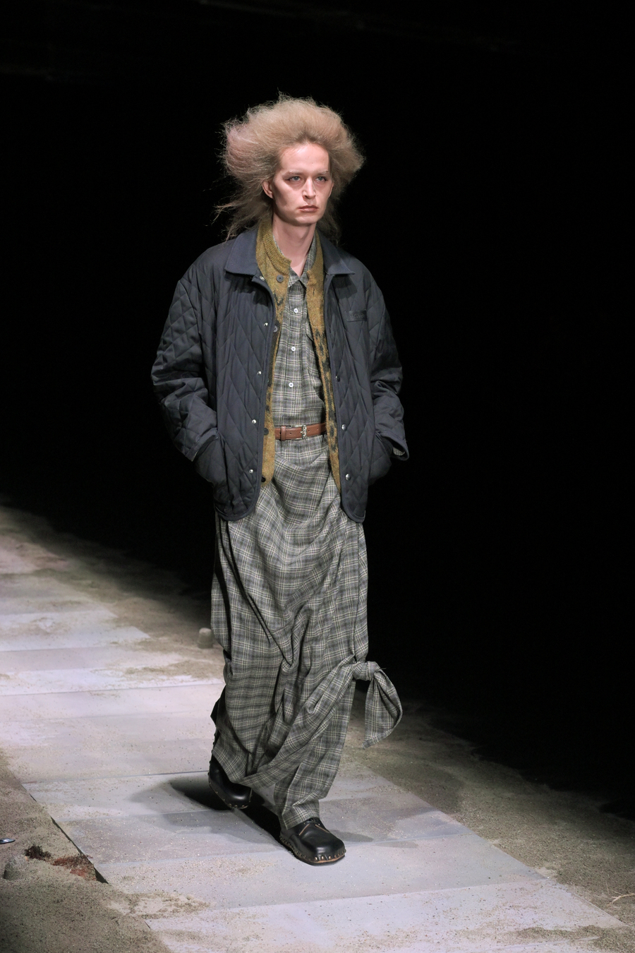 In a testament to the beauty found in decay, the knitwear adorned with sparkling Swarovski crystals projected a lunar radiance that captivated the audience. The evening was further enhanced by the enthralling soundscape composed by Aase Nielsen—an aural journey oscillating between aggression and serenity, tracing the horizon like an endless, rippling movement.
