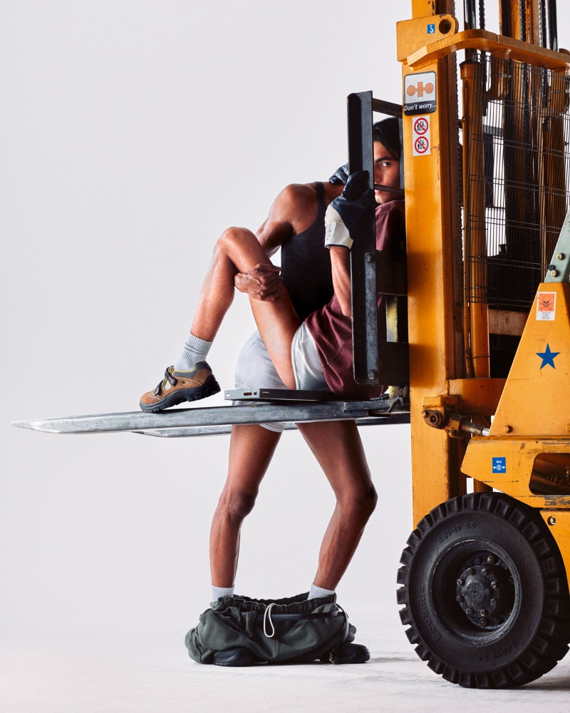 Influenced by the essence of U-Power’s mantra, ‘Don’t worry, be happy,’ Adrian González-Cohen’s snapshots exude a sense of effortless tranquility. Within these snapshots, the forklift, a monolithic symbol of U-Power’s natural habitat – factories and warehouses – is given a playful twist, caught between smoke breaks and captivating interludes.