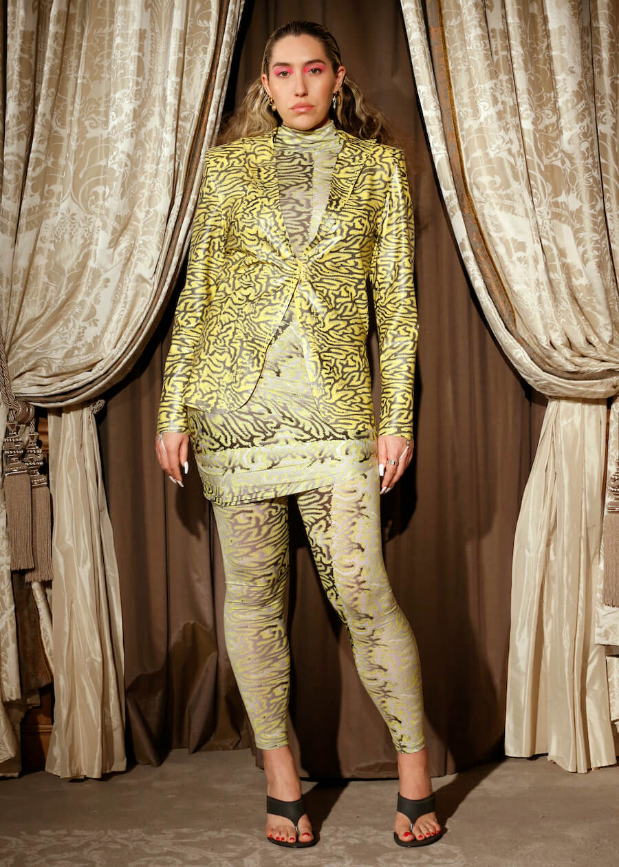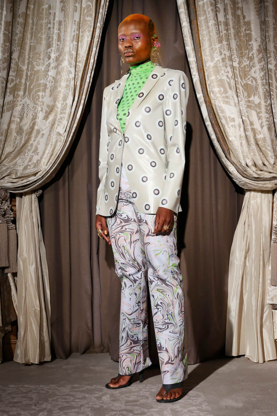 Chicago born, Parsons educated, Schloss is now based in L.A. and while she got many editors’ attention in Paris with her intimate presentation back in January at a hotel suite where guests sipped cocktails alongside models lounged around, she didn’t just appear out of thin air as the new kid on the block. She first made the cut working at Yeezy before finding her own label and was the first designer to receive funding as part of Kanye West’s creative incubator for her debut collection. But like many young designers, she has entered the market during a time of change that has seen the industry doing somersaults in a matter of weeks. Intimate and fun might not just describe her work, but might also be the future of fashion set against a new unmapped future.
