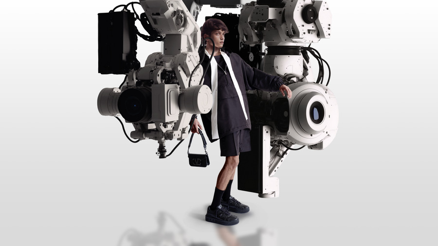 Maison Valentino Essentials is a quest for essence conducted within the perimeter of the masculine wardrobe and the elements that make up for it: an edit of pieces culled from the Valentino collections, streamlined to their design essence and organized into an expandable, ever-evolving system. As editing of shapes and items with a particular flow and feel, Maison Valentino Essentials stems from a deeply felt, emotionally rational and rationally emotional rumination about contemporary masculinity, acknowledging that many barriers have fallen in regard to what and how a man should feel and look. For Pierpaolo Piccioli, romanticism and fragility are part of the picture, and so is diversity. This awareness activates a process in which opposites merge, fluidly.