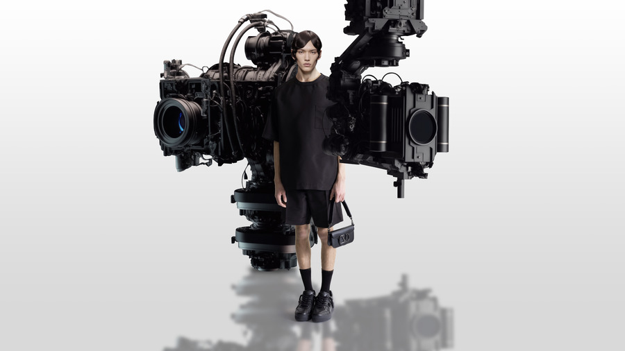 Maison Valentino Essentials is a quest for essence conducted within the perimeter of the masculine wardrobe and the elements that make up for it: an edit of pieces culled from the Valentino collections, streamlined to their design essence and organized into an expandable, ever-evolving system. As editing of shapes and items with a particular flow and feel, Maison Valentino Essentials stems from a deeply felt, emotionally rational and rationally emotional rumination about contemporary masculinity, acknowledging that many barriers have fallen in regard to what and how a man should feel and look. For Pierpaolo Piccioli, romanticism and fragility are part of the picture, and so is diversity. This awareness activates a process in which opposites merge, fluidly.