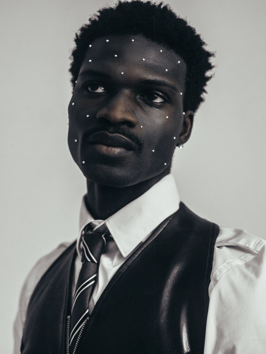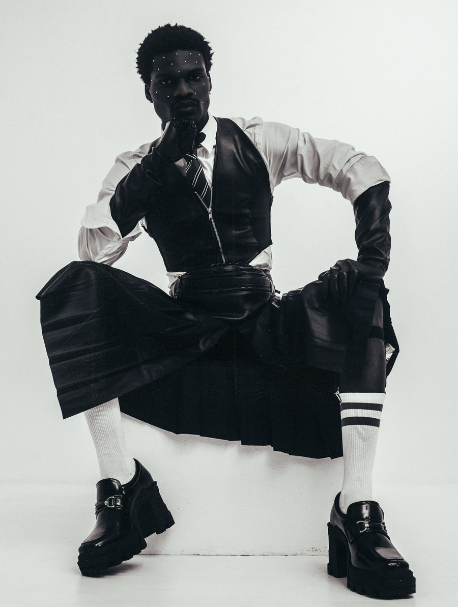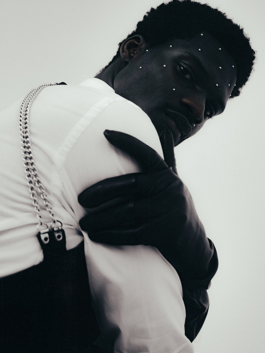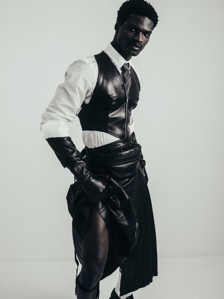 A KALTBLUT exclusive. Photography by Oleg Borisuk. The model is Maldwyn. Styling by Kiss Mark using Hugo Boss, TopShop, Michael Kors, Vivienne Westwood, Umbro, Kissmark, Saint Laurent, Versace, Asos Design, Tom Ford, Review, Dr Martens.