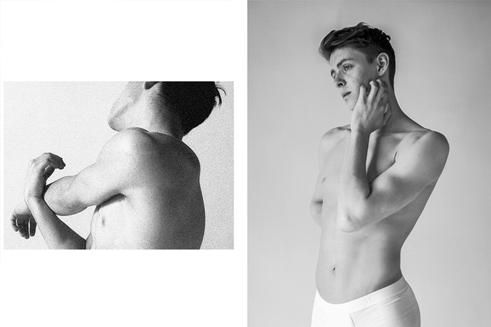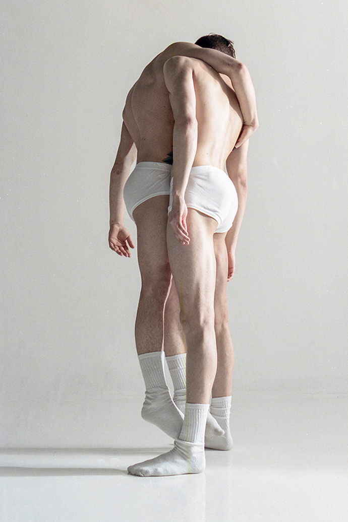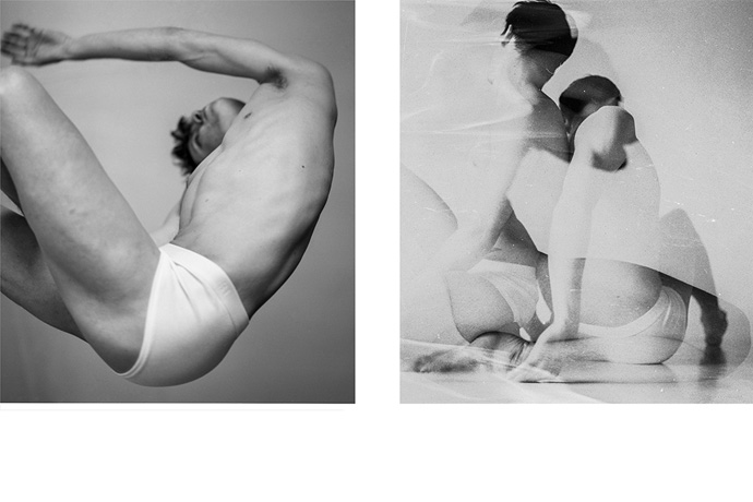 A KALTBLUT exclusive editorial. Photographer Gerardo Vizmanos captured Brin Schoellkop and Nicolas Allard – École Nationale de Cirque. Montreal – for us. These images are inspired by acrobatics as part of human condition. Acrobats base their work not only in effort and physical strength but also in trust. They trust that performing in an environment that questions gravity will be safe. The acrobat can only overcome the risk of failing by trusting in his own body, mind, and technique and also in his mate – who is never a rival. Acrobats is one of the best examples where competition is not to declare a winner but to incite each other and mutually hold themselves. The photos work with the notion that the exercise of the body and the efforts of the acrobats to improve their technique enhance an existential dimension of the subject. The images isolate the individuals in a timeless and spaceless environment where only their individual presence is possible. These images where taken in exclusively using analog format.