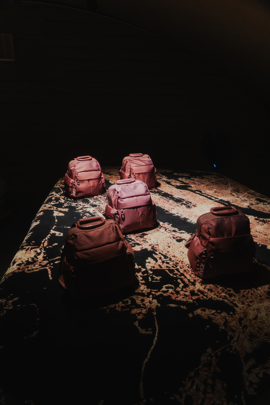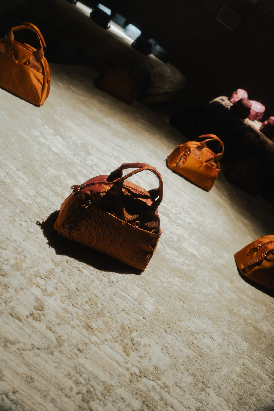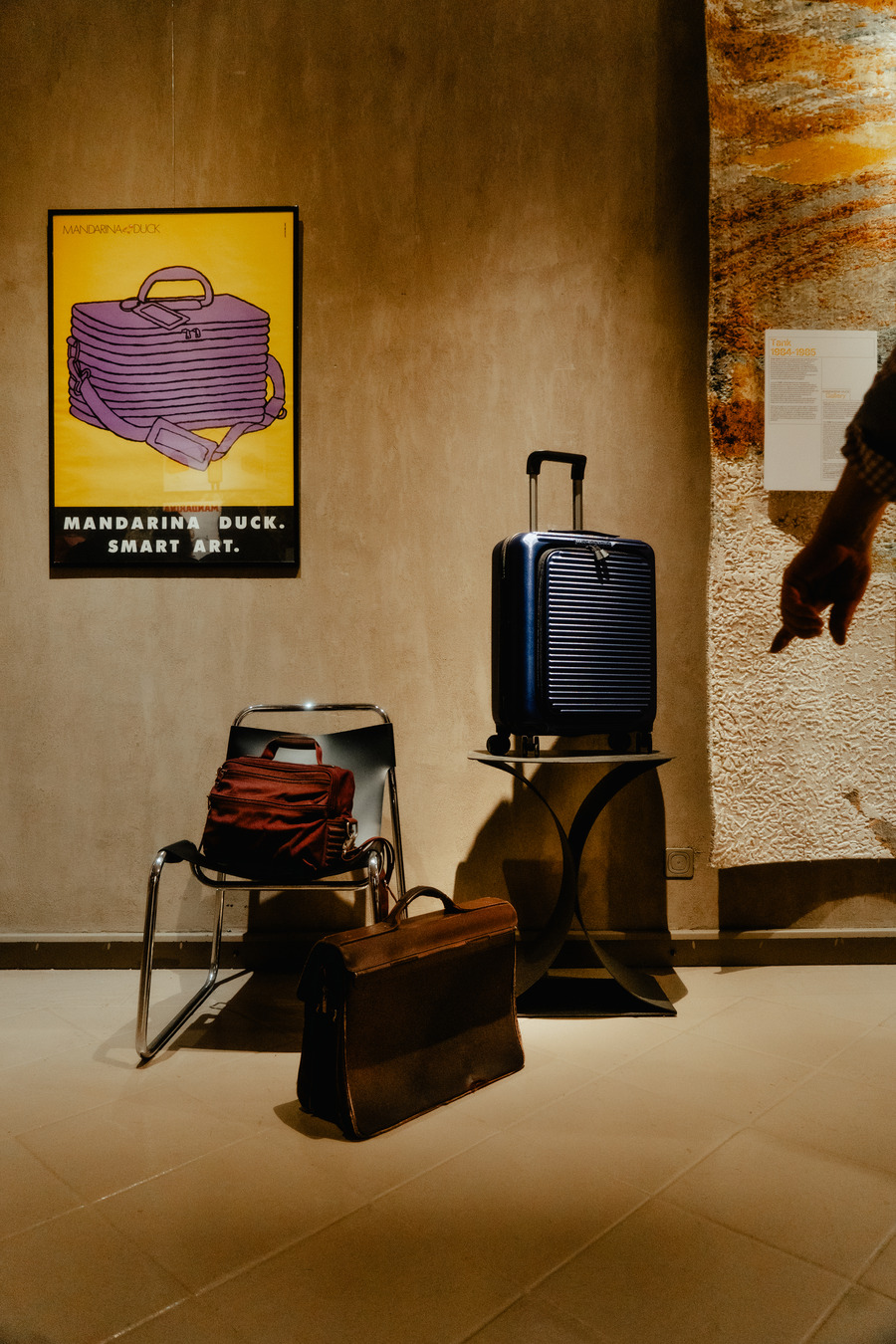 Integral to the gallery’s sensory journey is the tangible presence of cult-favorite product lines. Here, visitors encounter a design renaissance, with leather and fabric pieces reflecting both the brand’s storied past and its persistent evolution. Highlighted is the MD20 line, emblematic of Mandarina Duck’s adaptive style and versatility in material innovation.