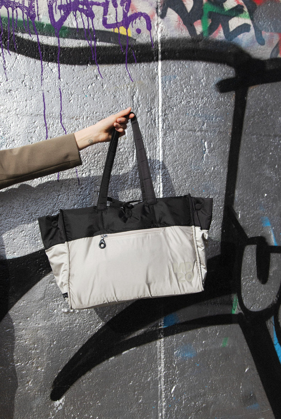 This line includes crossover bags and backpacks, alongside two spacious totes with a bicolor reversible design. Signature elements reveal MD20’s branding through an embossed print along with semi-glossy straps, making these designs both stylish and functional, equipped for everyday use.