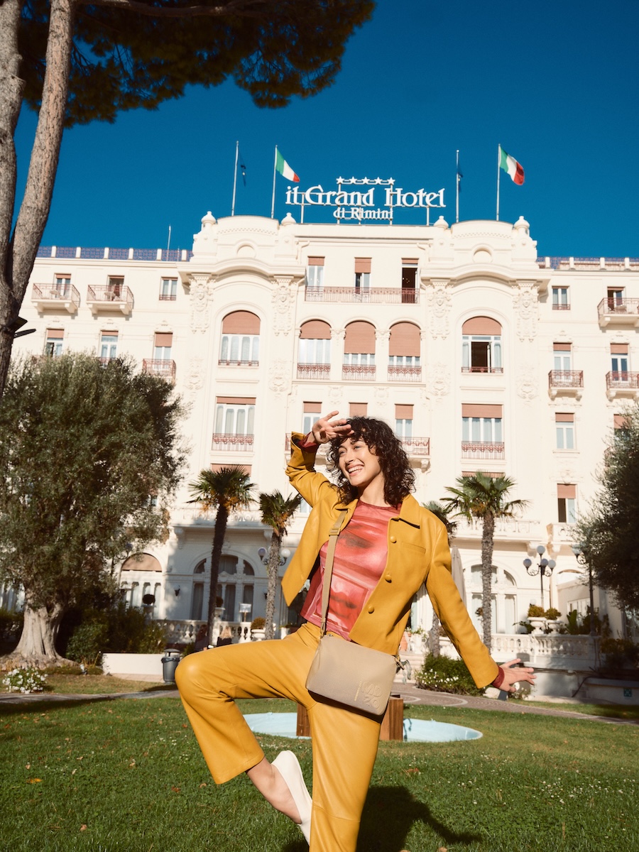 Mandarina Duck’s Spring/Summer 2026 collection captures the essence of Rimini, the heartbeat of the Italian summer. Inspired by the playful nostalgia of Federico Fellini and the iconic Grand Hotel Rimini, this collection celebrates the joy of travel as a return to one’s roots.