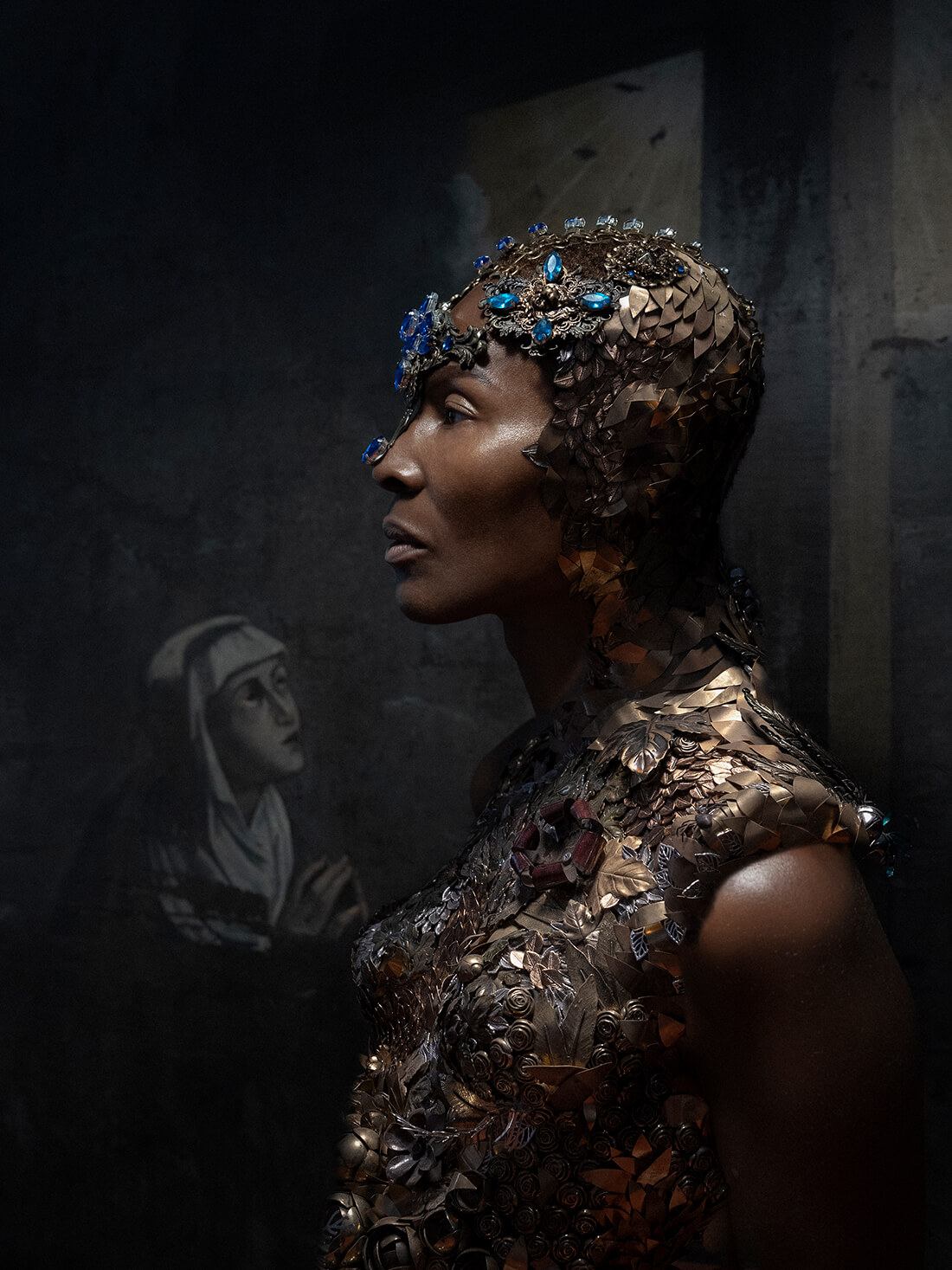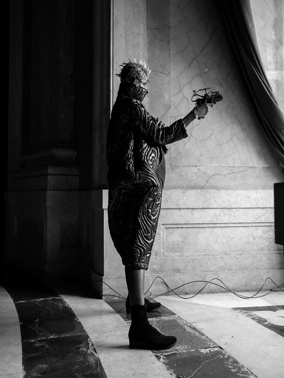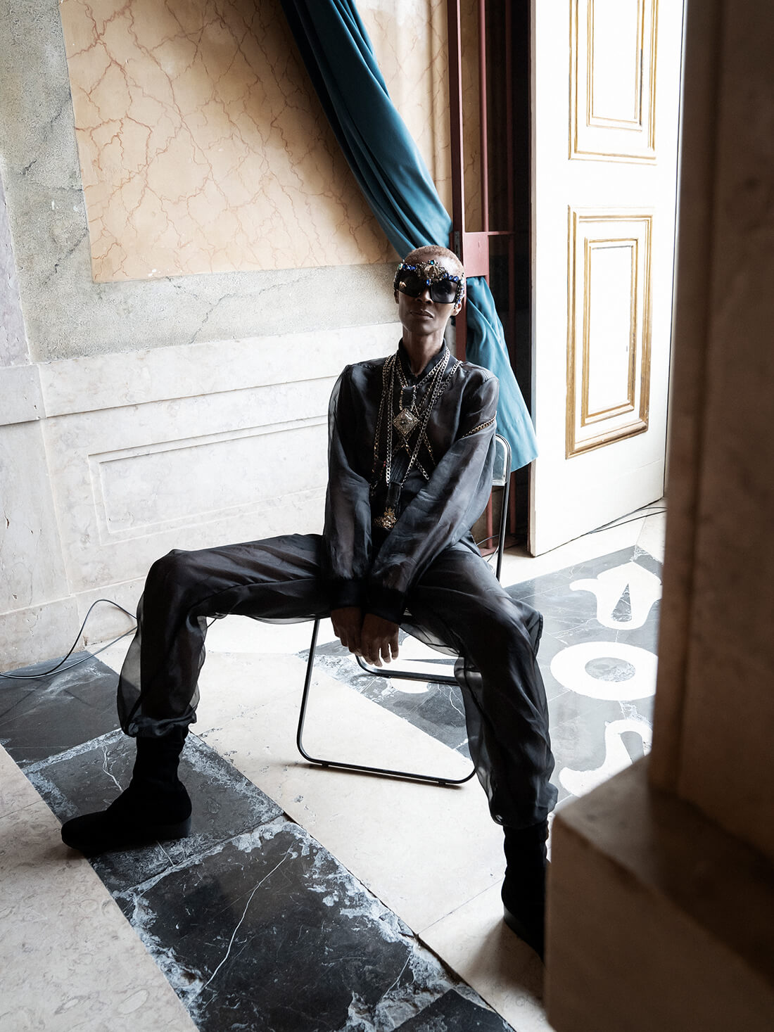 A KALTBLUT exclusive. ModaLisboa kicks off the new fashion season today and we are celebrating designer Valentim Quaresma with an exclusive editorial by Berry Behrendt. Model Sonja Yaso is wearing Fashion and Jewellery by one of our favorite designers from Portugal. Sonja Yaso is an iconic former Model, make up artist, fashion and beauty editor and fine artist (collages and Paintings). She was running on the catwalks with young Naomi Campbell, Cindy and Claudia. Sonja is now based in Lisbon. The shooting took place at Palacio National da Ajuda , Lisboa!