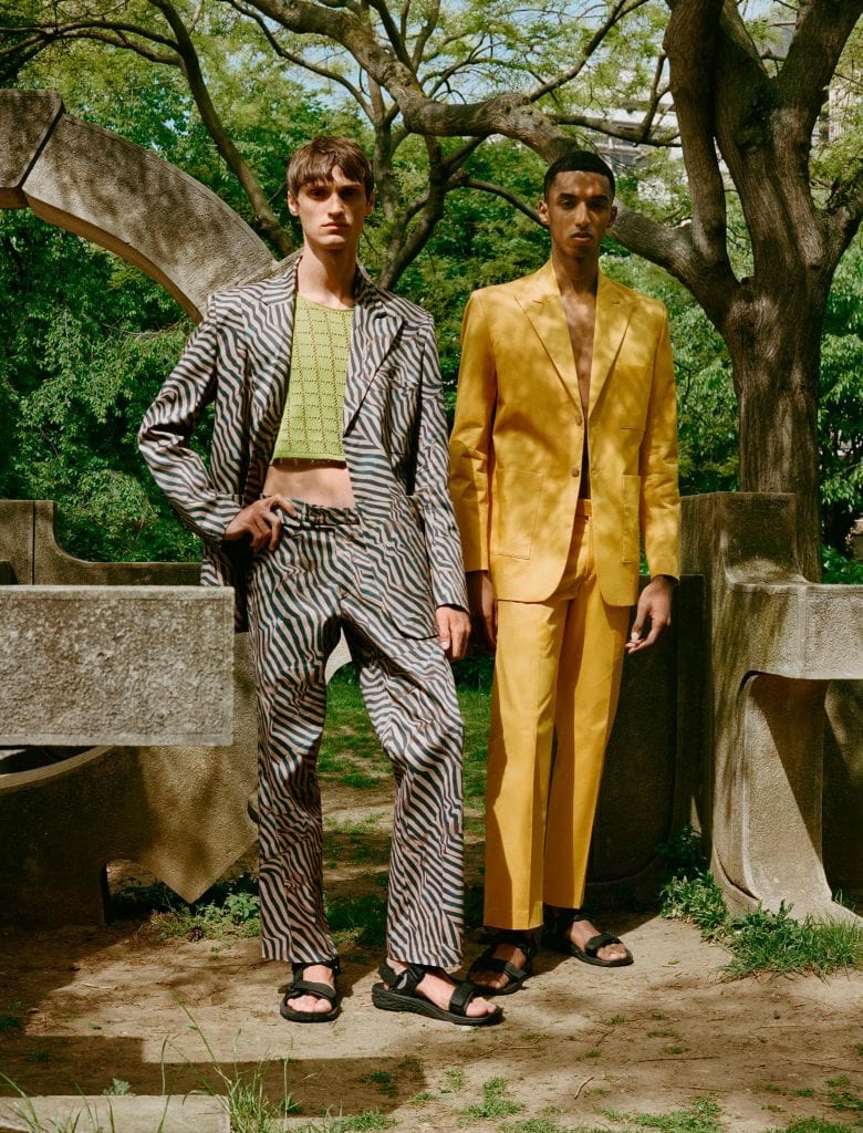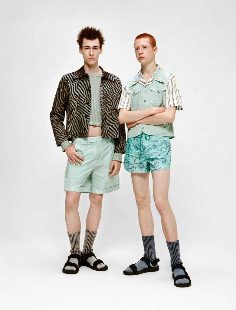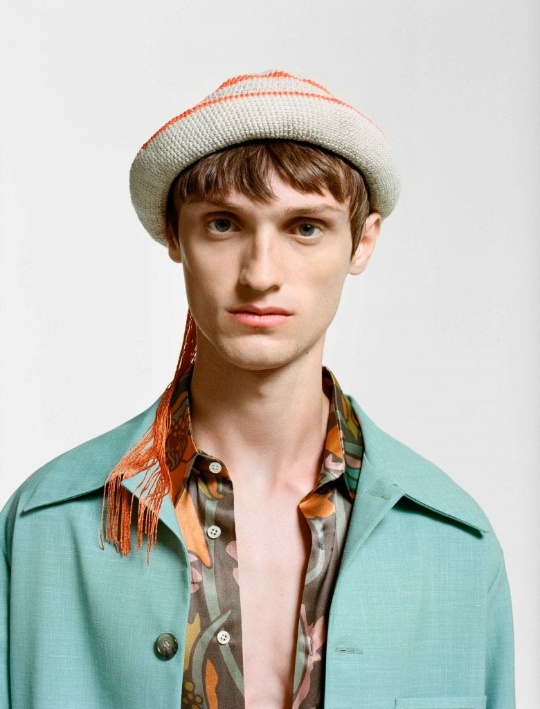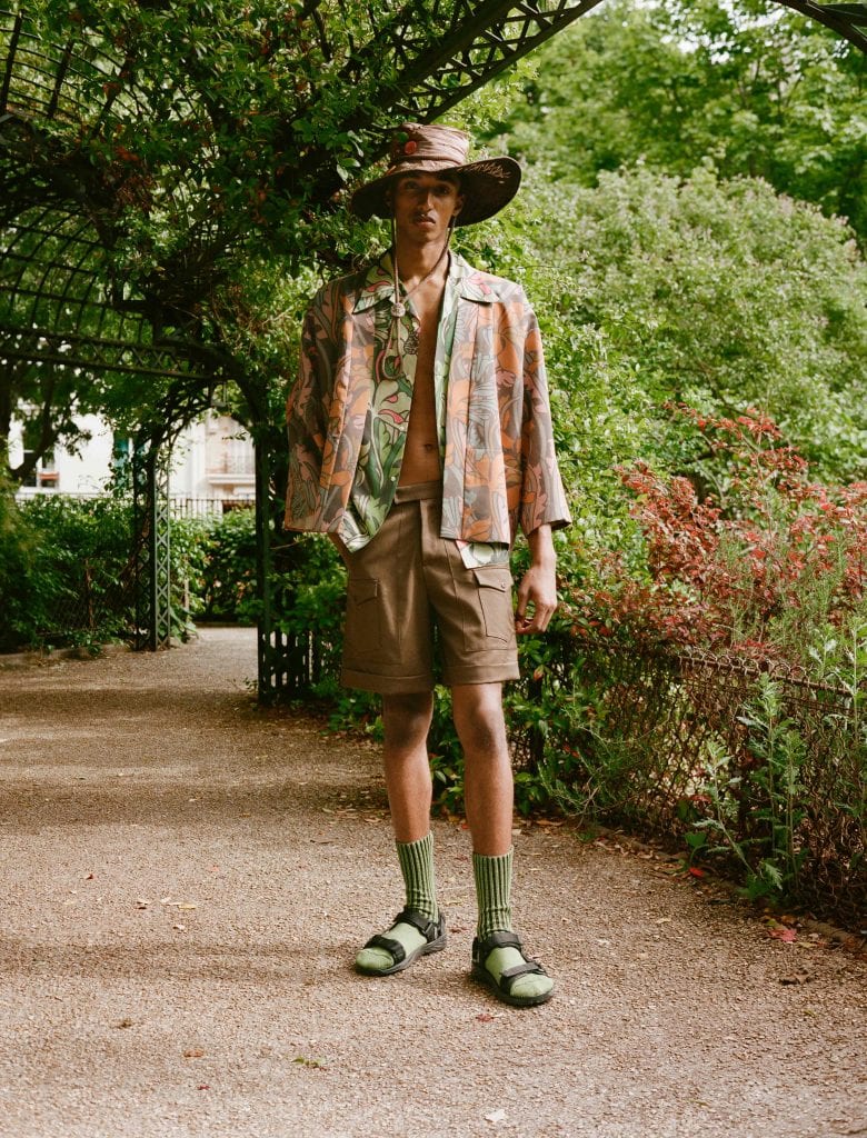 The “joie de vivre” feel-good summer prints giving a personal twist to a Hawaiian style or a more easy-oasy take on the military vibe with a bright and bold camouflage. To have fun with prints and vibrant colours. In the outerwear, the classic Mans jacket pattern has turned into an underwear garment stripping it of armour and interlinings, acting more like an overshirt than a jacket with tactical patch pockets and fabrics focused on workwear blurring the line between ‘’Summer camp’’ and easy elegance as if you were dressed to enjoy your membership in a country club.