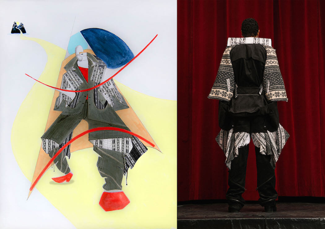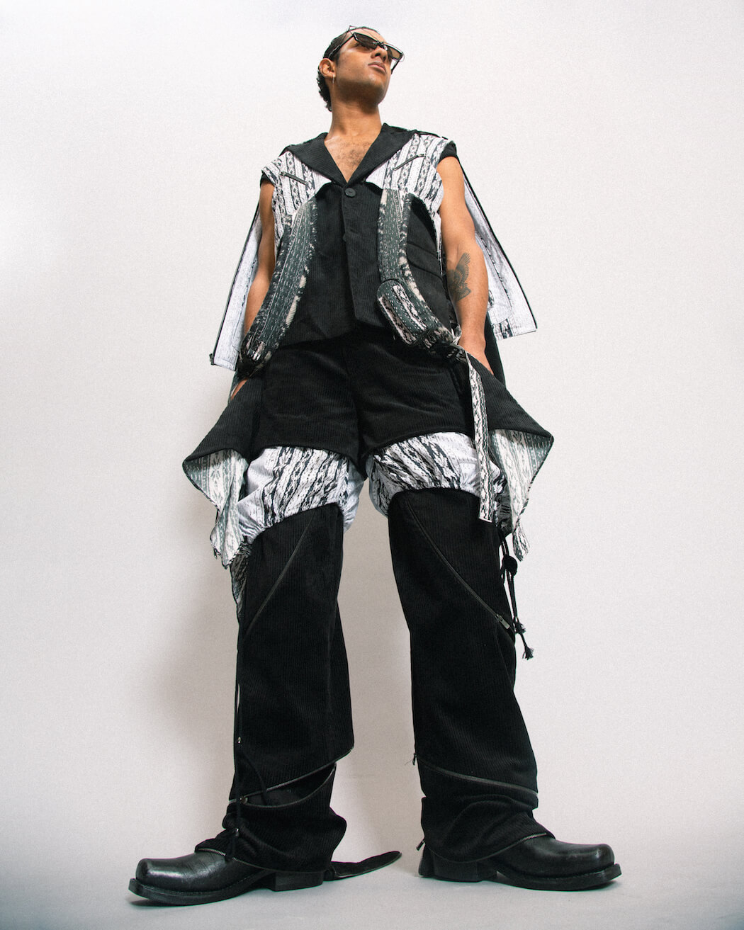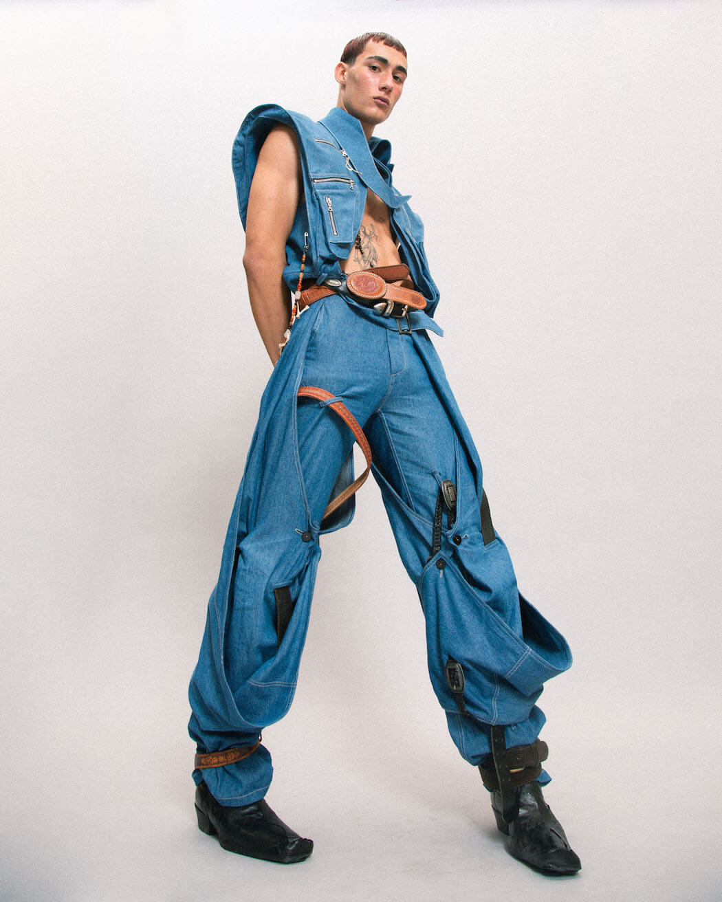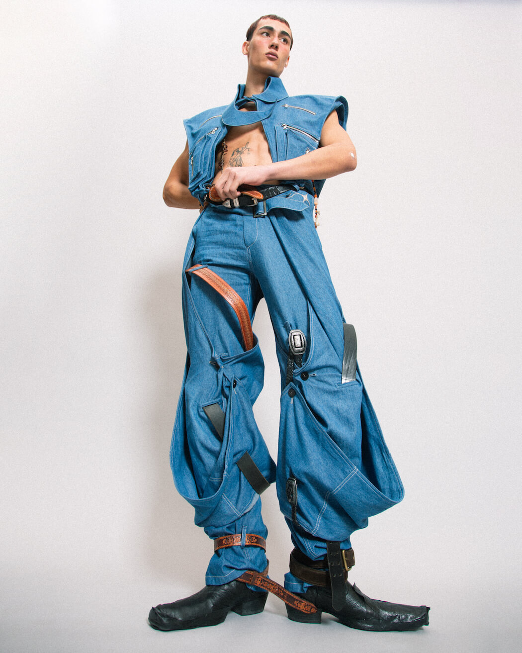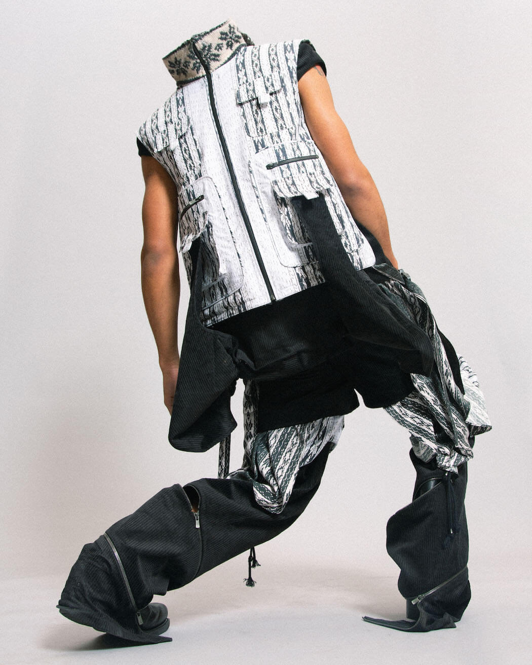 Izzy Du is a Canadian fashion designer who completed her foundation at Central Saint Martin’s and is in her final year at the Royal Academy of Fine Arts. Izzy Du presents both men and women’s wear with a focus on eco-effectiveness, her objective is to create timeless and seasonless collections to increase the value of a garment by reducing built-in obsolescence in clothing. To Izzy Du there is humour in darkness and seduction in danger, she designs to dress a formidable being, unpredictable and unafraid to get lost on a path that can’t be seen.