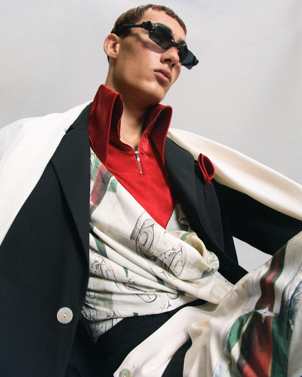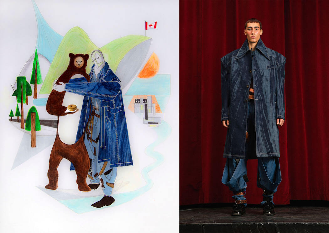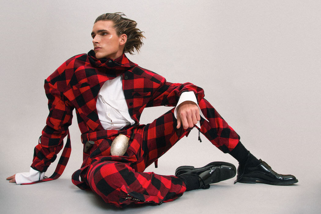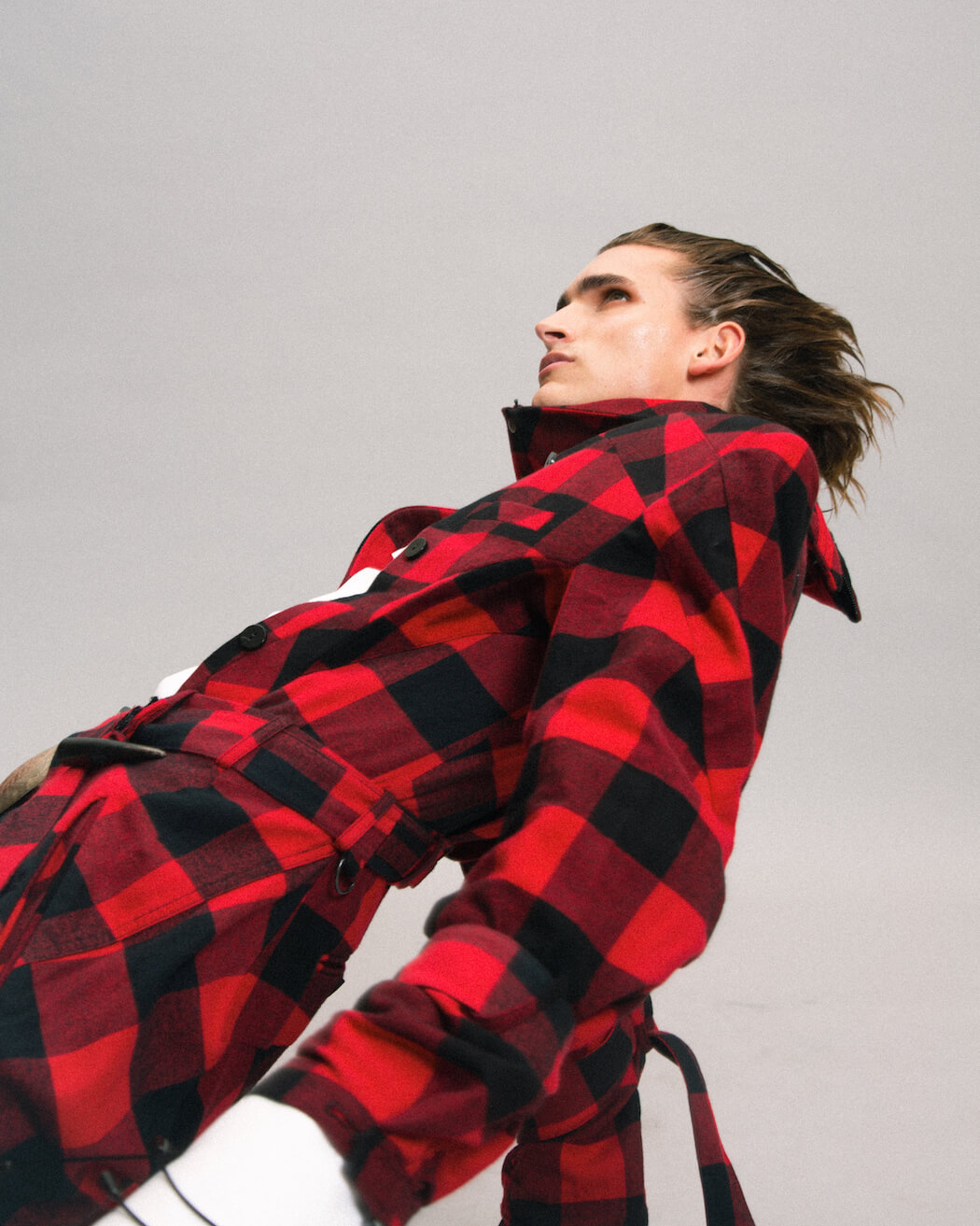 MAPLEWOODS is a menswear collection inspired by the nature of Canada and the lost woods. The collection is characterized by function and utility through a mix of tailoring, sport-wear and selective colour composition. Classically ironic lumberjack elements are re-born into silhouettes of modern power and poise; thus, the wearer is prepared to go from a trek in the mountains to dinner at 8, then lounge at 10, and all they need is already on their backs. MAPLEWOODS captures the off-key essence of North American woods meets the outside world–A mystery and adventure into the great Northern!