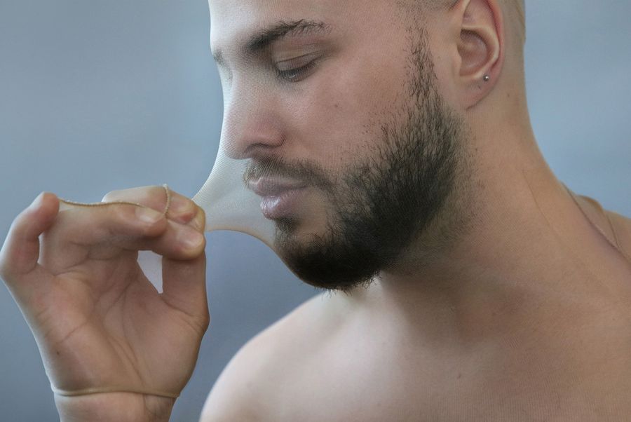 The artist’s look forces masculinity to pause and reflect, to open itself to his scrutinising eye. The meaning of wearing a beard is questioned: is it a symbol or a mere lure? The character named «Beau Menteur» acts as a prism on which the light of normative gaze is forced to break up into its constituent colours, revealing the full diversity of a rainbow.