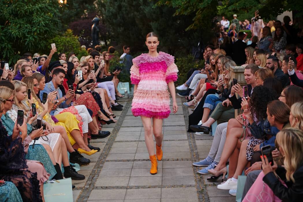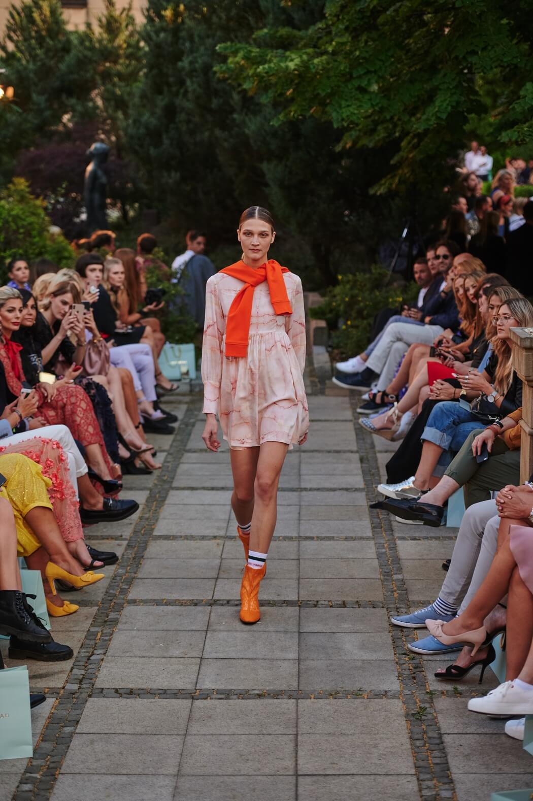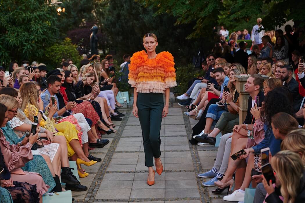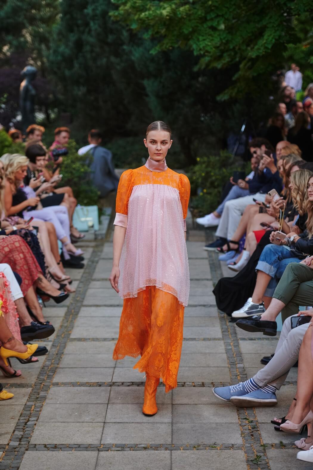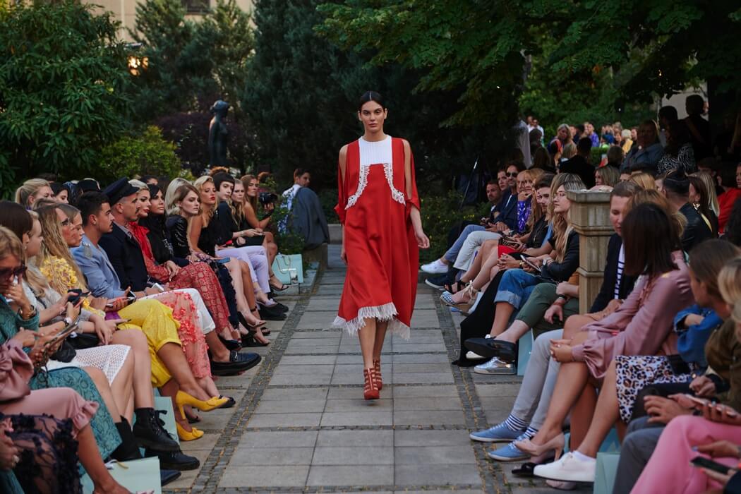 #BerlinFashionWeek – Designer Marcel Ostertag unveiled his new Spring/Summer 2020 collection: LOVERS! Silk dresses, light blouses, airy caftans, swinging skirts and intoxicating colour concepts flow together with your own prints and a lot of love. Small, playful pearl embroideries glide down pastel dresses, romantic and playful, without forgoing clear lines. The designer has been playing with contrasts since his first collection.