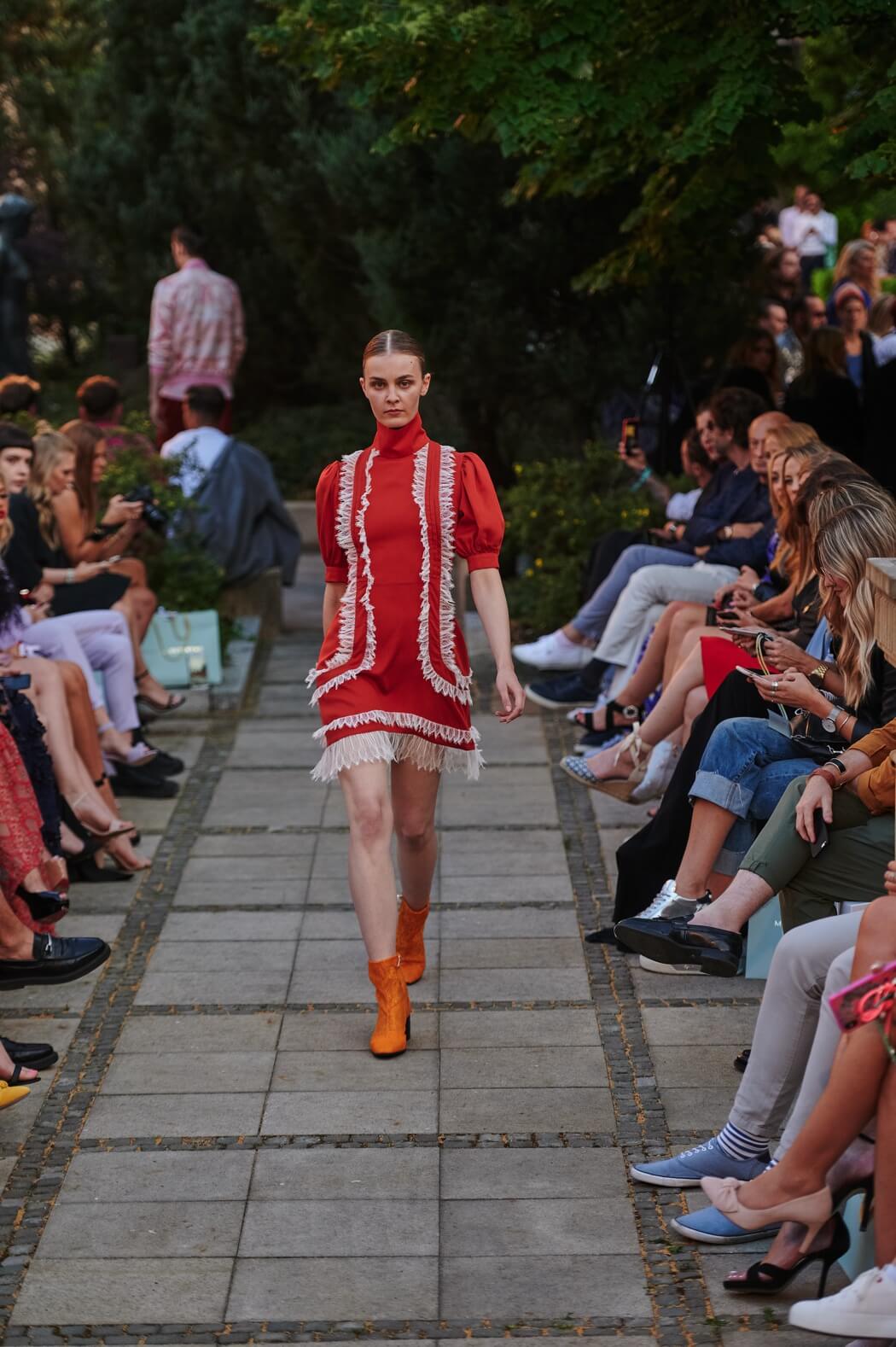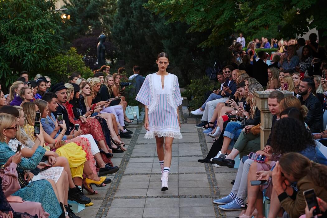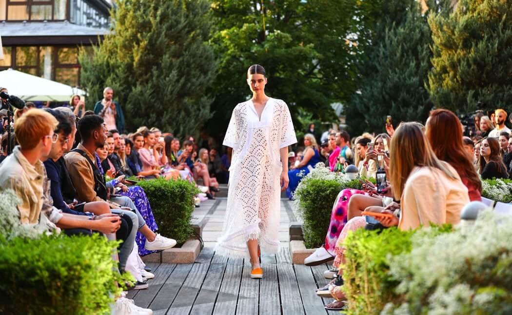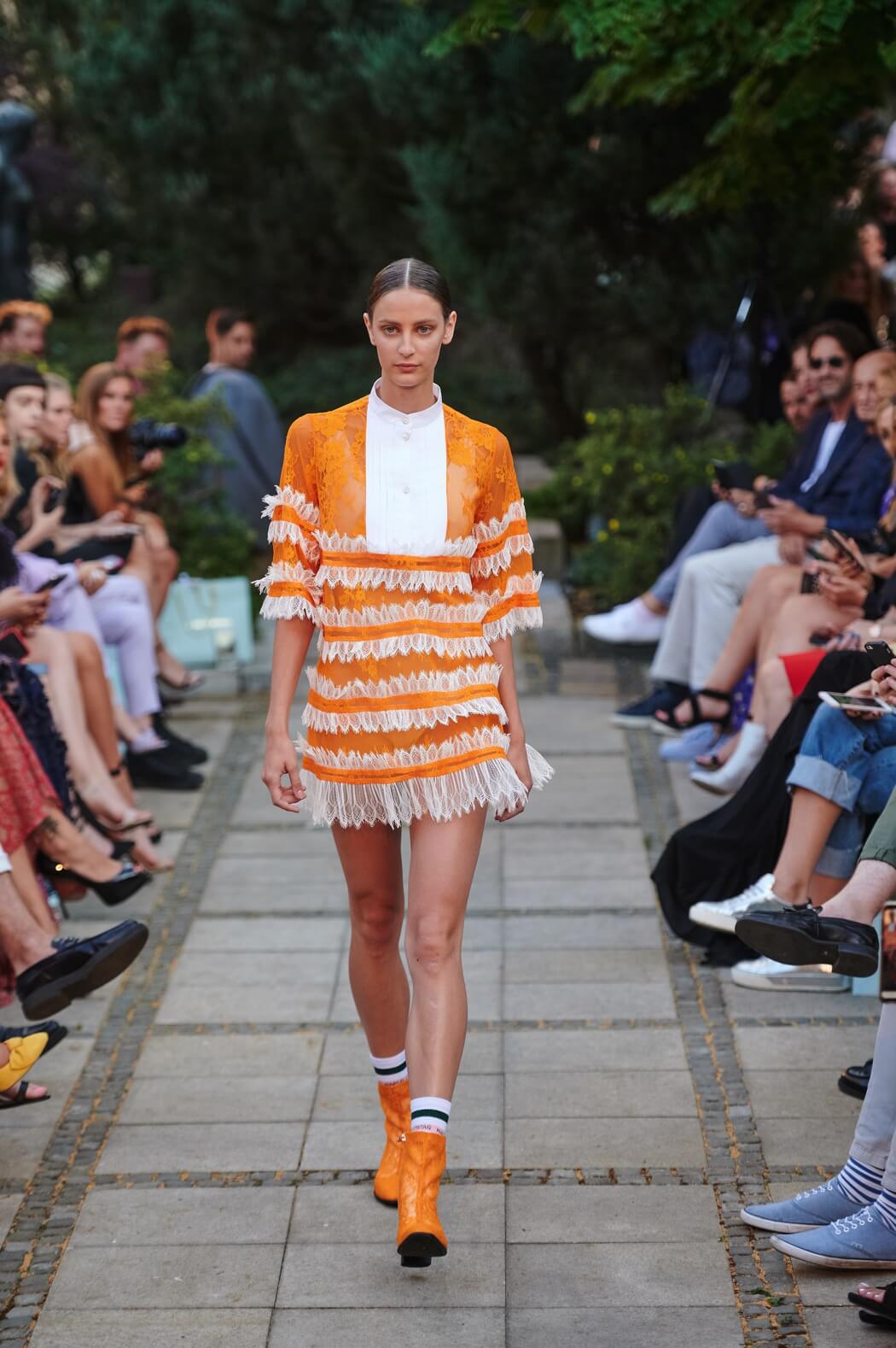 #BerlinFashionWeek – Designer Marcel Ostertag unveiled his new Spring/Summer 2020 collection: LOVERS! Silk dresses, light blouses, airy caftans, swinging skirts and intoxicating colour concepts flow together with your own prints and a lot of love. Small, playful pearl embroideries glide down pastel dresses, romantic and playful, without forgoing clear lines. The designer has been playing with contrasts since his first collection.